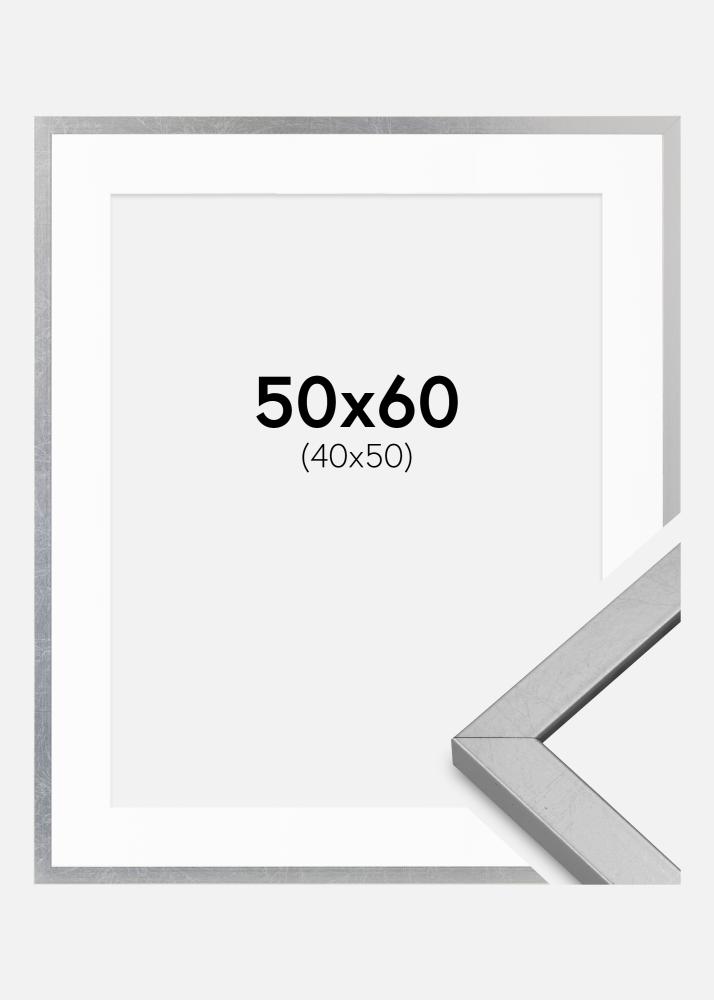Kehys Minerva Hopea 50x60 cm - Passepartout Valkoista 41x51 cm