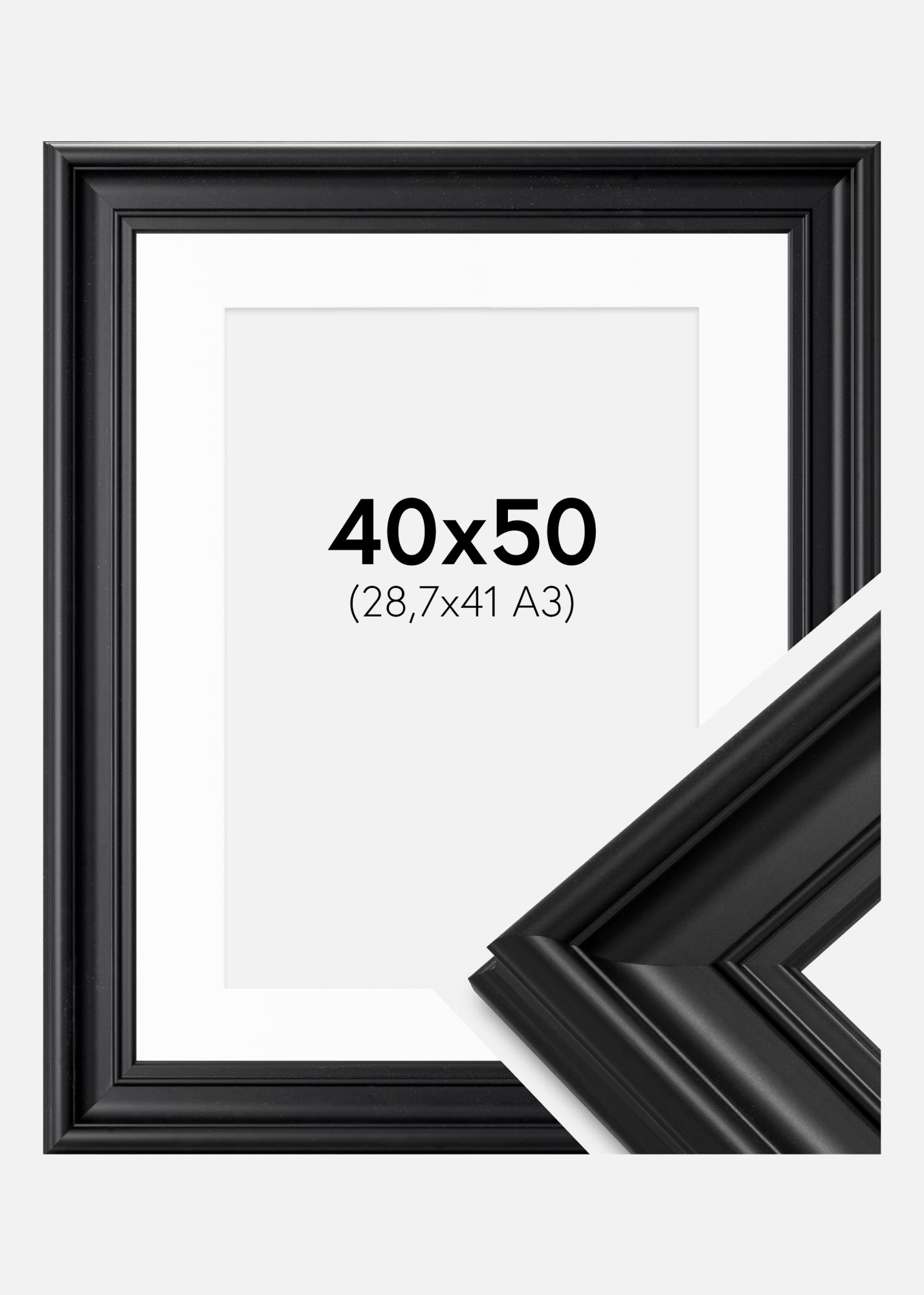 Kehys Mora Premium Musta 40x50 cm - Passepartout Valkoinen 29,7x42 cm (A3)