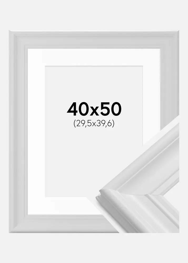 Kehys Mora Premium Valkoinen 40x50 cm - Passepartout Valkoinen 12x16 inches
