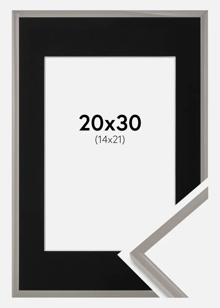 Paketti, johon kuuluu kehys ja kehykseen sopiva musta paspatuuri. Tuotekuvassa näet kehyksen mitat (lihavoituna) ja paspatuurin sisämitat (suluissa). Huomioi, että paspatuurin sisämittojen tulee olla aina 1 cm pienemmät kuin haluttu kuvakoko.