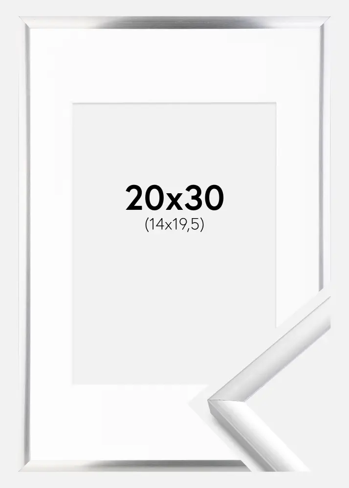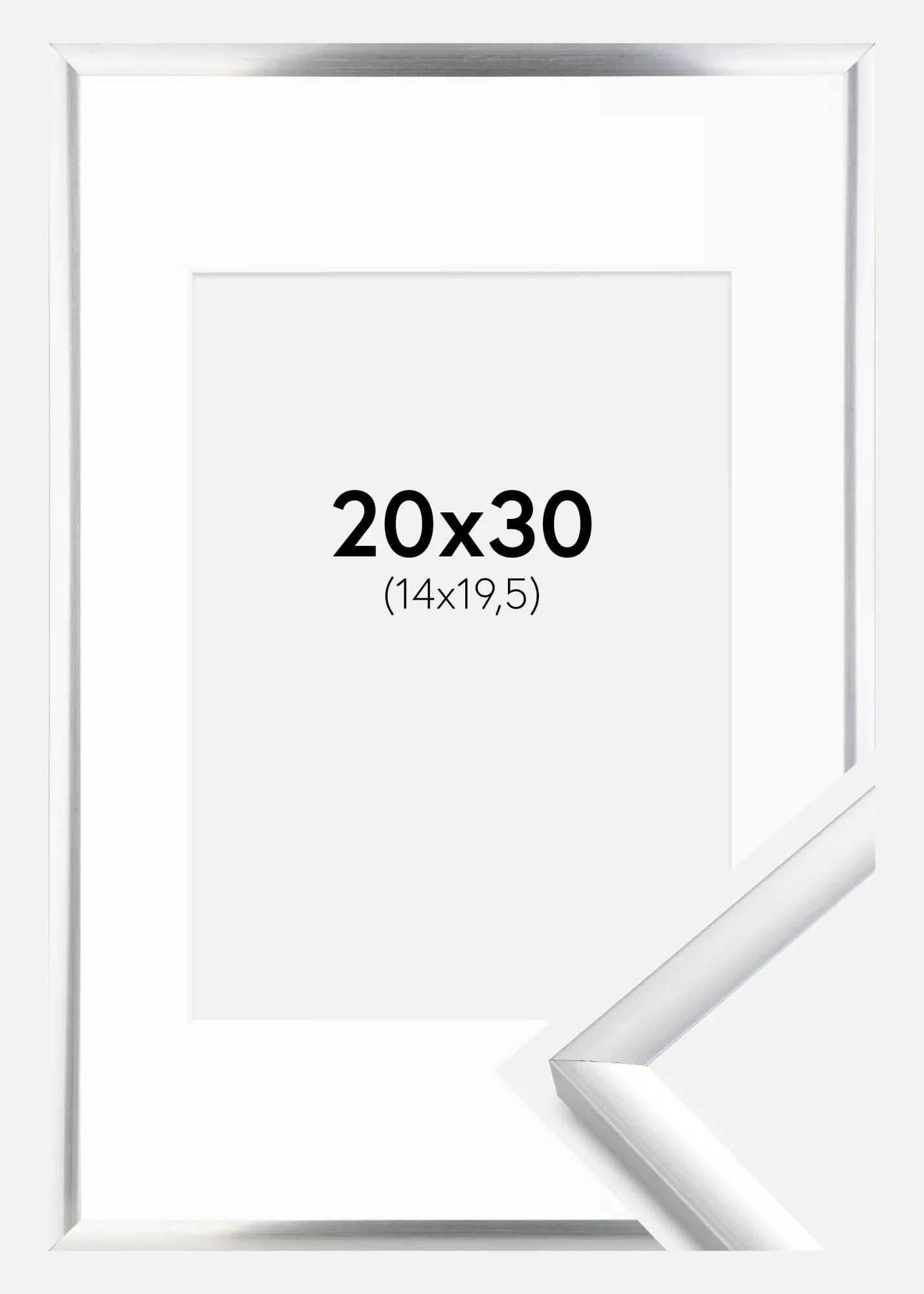 Kehys New Lifestyle Hopeanvärinen 20x30 cm - Passepartout Valkoinen 15x21 cm