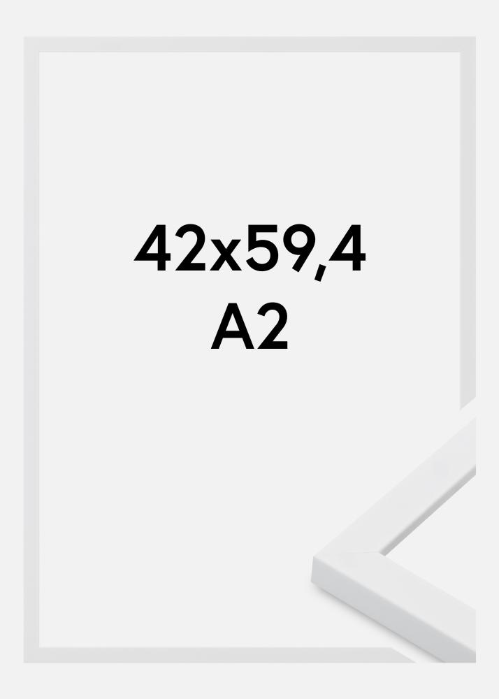 Tämä tyylikäs valkoinen Kehys korostaa kauniisti suosikkikuviasi. Koko 42x59,4 cm sopii täydellisesti A2-kokoisille julisteille ja suuremmille kuville. Matta valkoinen pinta luo rauhallisen ja harmonisen kehyksen, joka antaa kuvasi olla keskiössä.