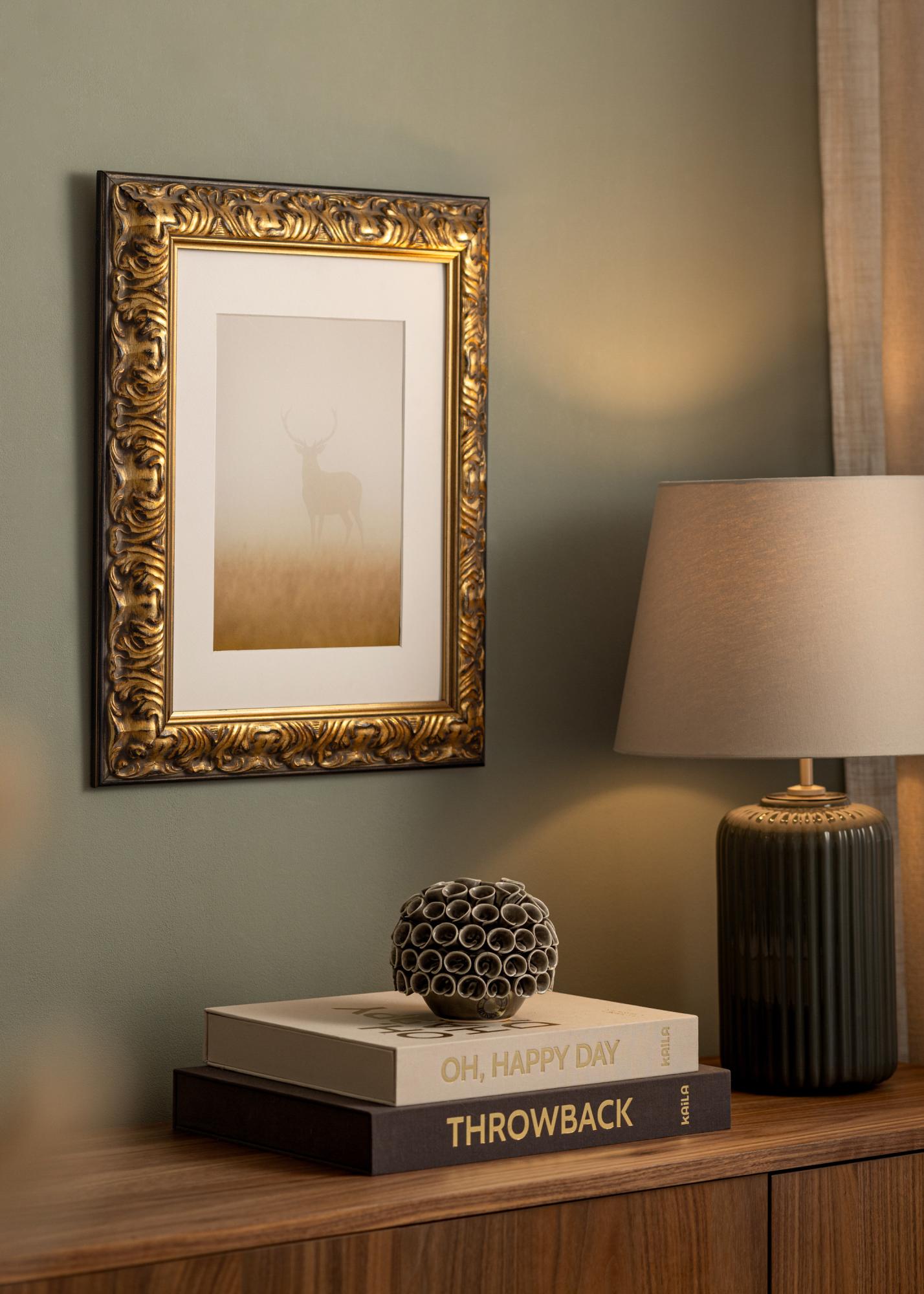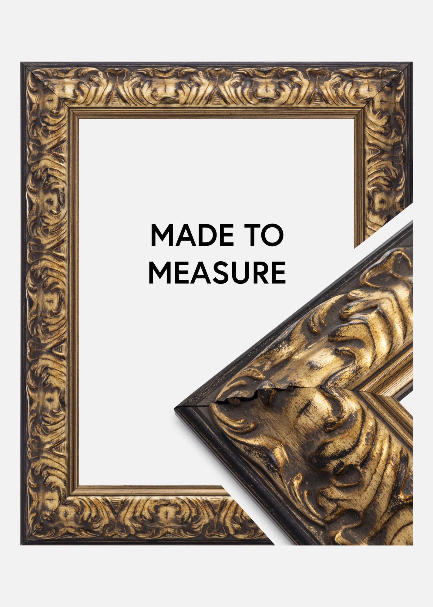 Mukautettu kuvakehyksemme Odin kultaisena ja mustana on täydellinen valinta, jos etsit eleganttia ja klassista kehystystä. Kultapinnan ja mustien yksityiskohtien ansiosta tämä valokuvakehys tarjoaa antiikkitunnelmaa, joka korostaa jokaista taideteosta tai valokuvaa. Koristeellinen muotoilu luo kauniin kontrastin lämpimän kullan ja syvien mustien detaljien välillä, mikä antaa tyylikkään ja perinteisen ilmeen.