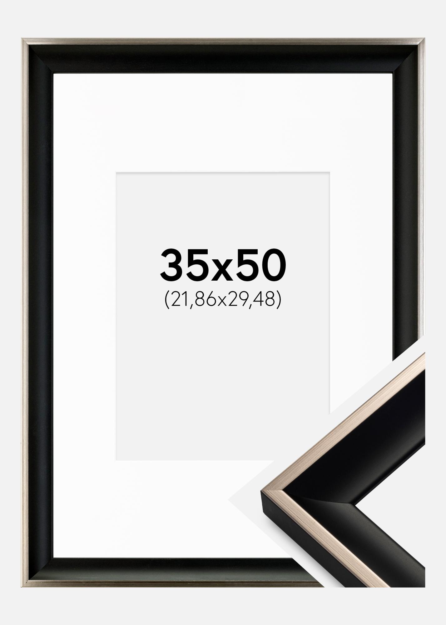 Kehys Öjaren Musta-Hopeanvärinen 35x50 cm - Passepartout Valkoinen 9x12 inches