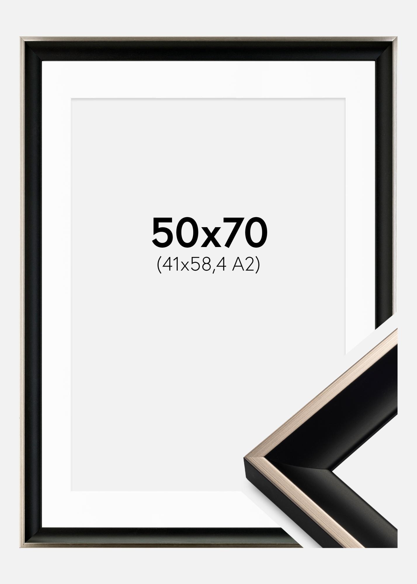 Kehys Öjaren Musta-Hopeanvärinen 50x70 cm - Passepartout Valkoinen 42x59,4 cm