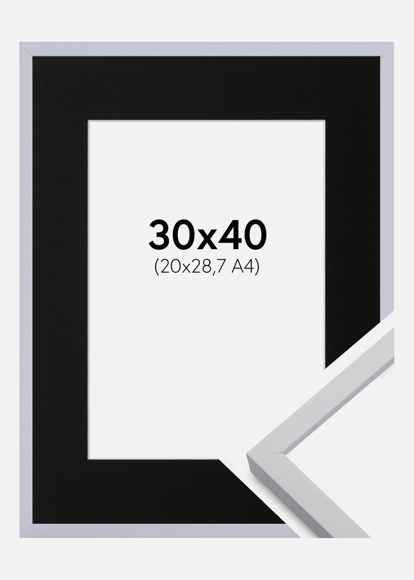 Kehys Oslo Valkoinen 30x40 cm - Passepartout Musta 21x29,7 cm (A4)