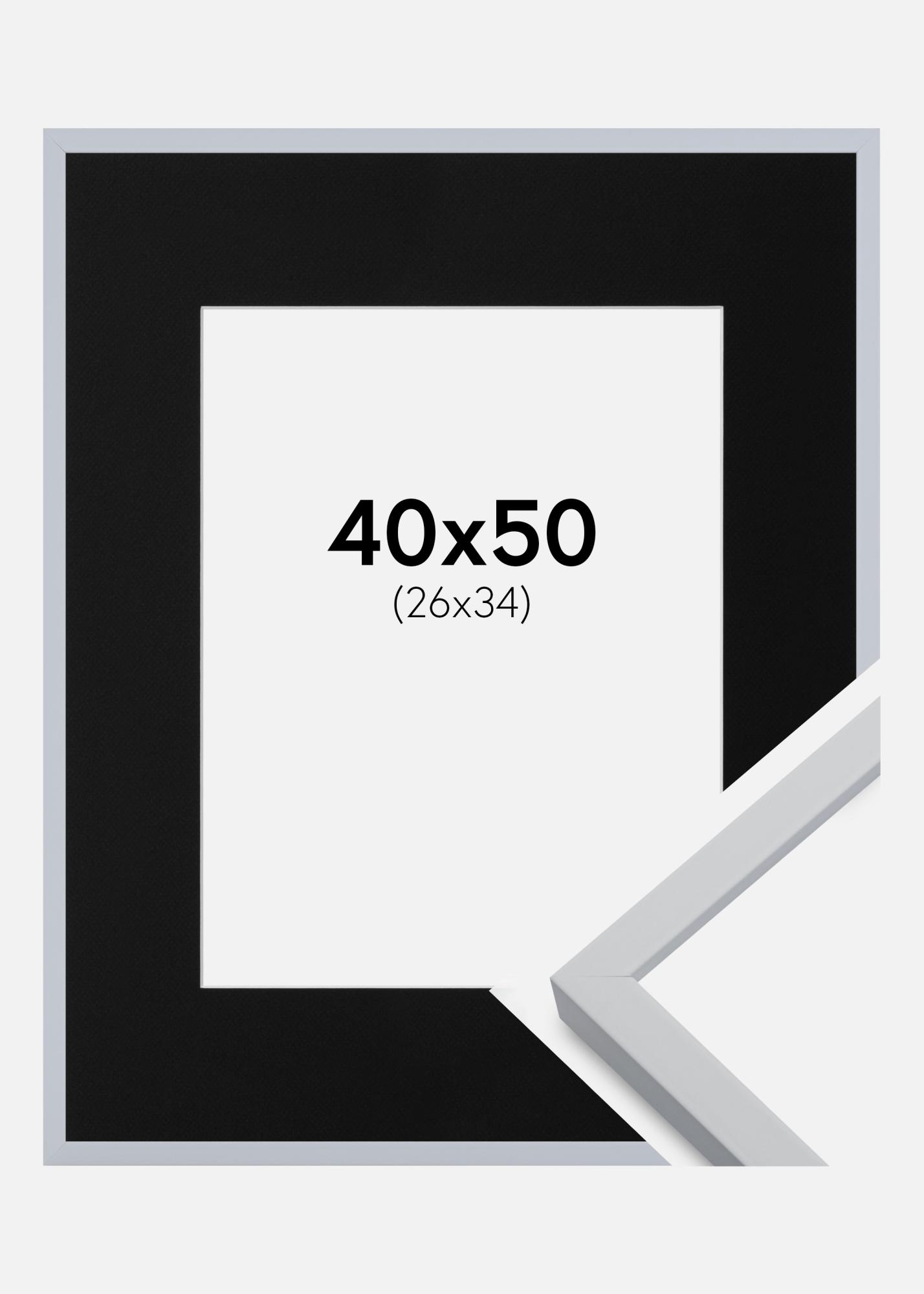 Kehys Oslo Valkoinen 40x50 cm - Passepartout Musta 27x35 cm
