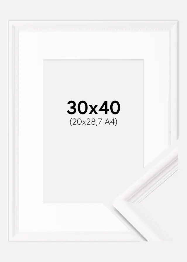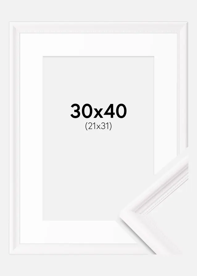 Kehys Rokoko Kulta 30x40 cm - Passepartout Valkoinen 21x29,7 cm (A4)