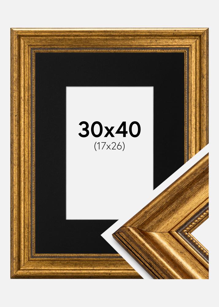 Kehys Rokoko Kulta 30x40 cm - Passepartout Musta 18x27 cm