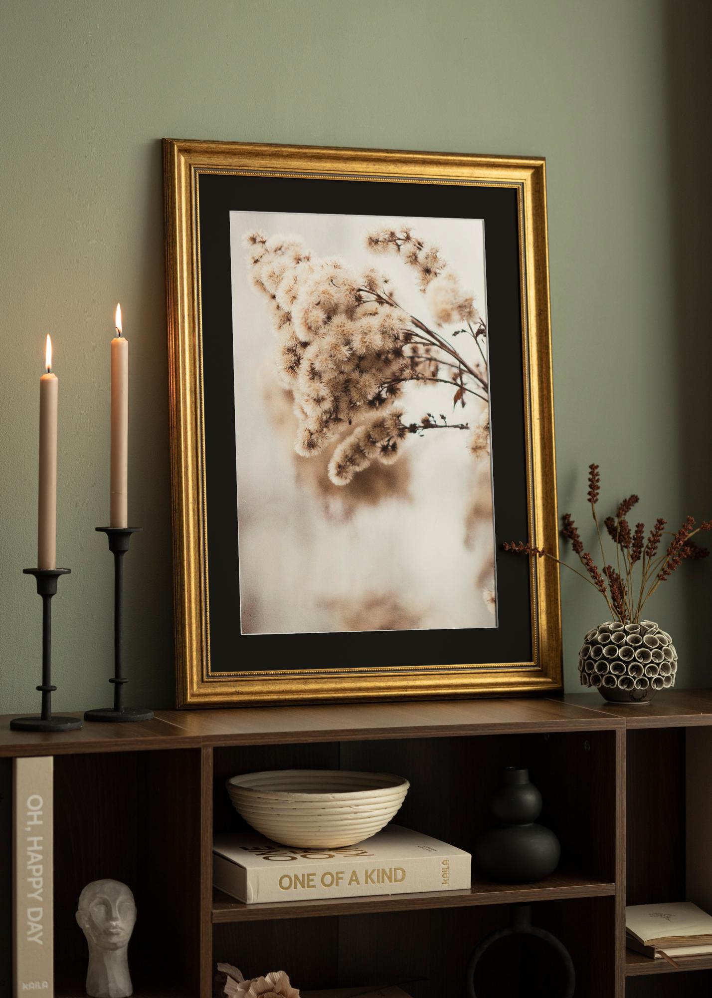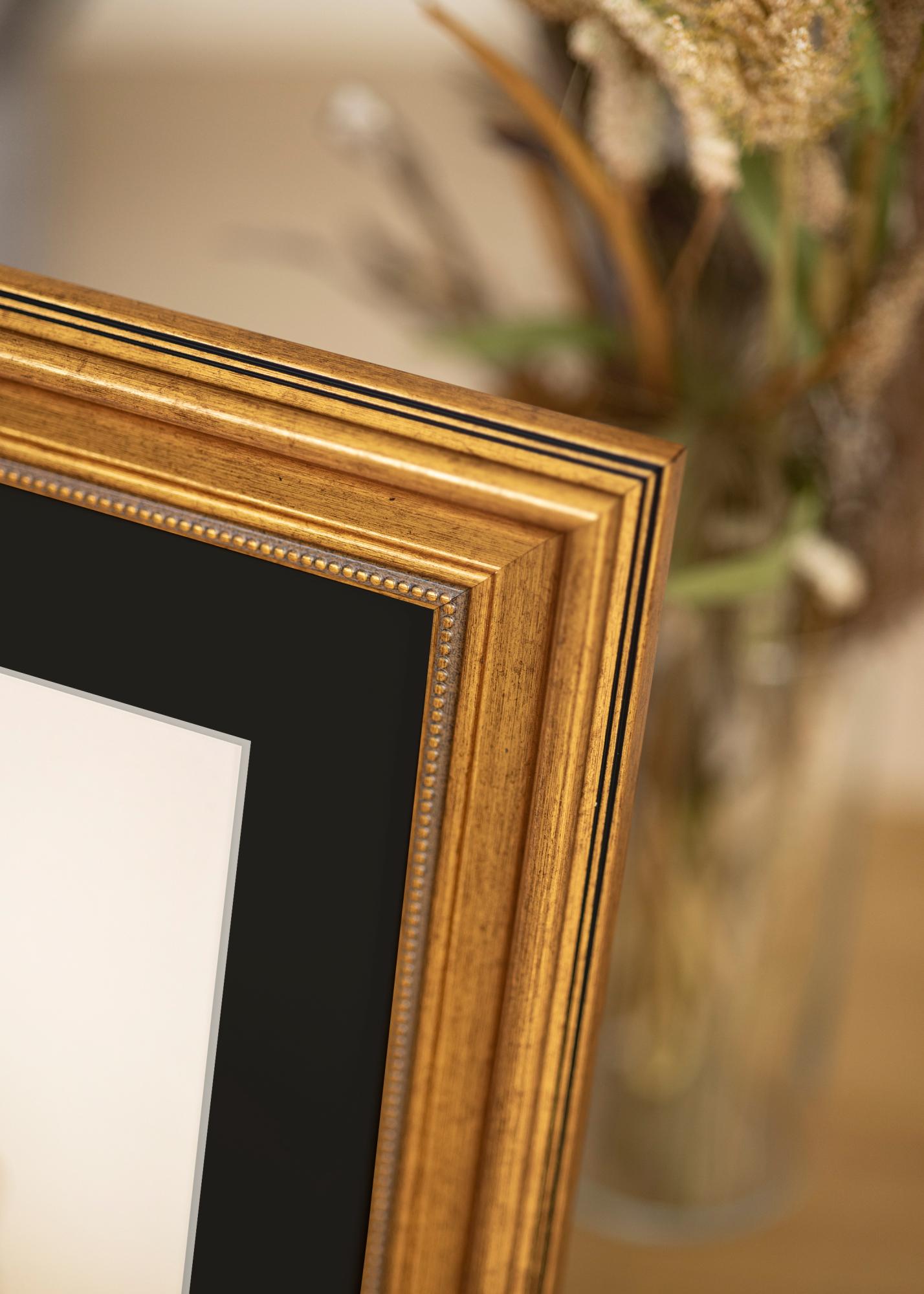 Kehys Rokoko Kulta 30x40 cm - Passepartout Musta 21x29,7 cm (A4)
