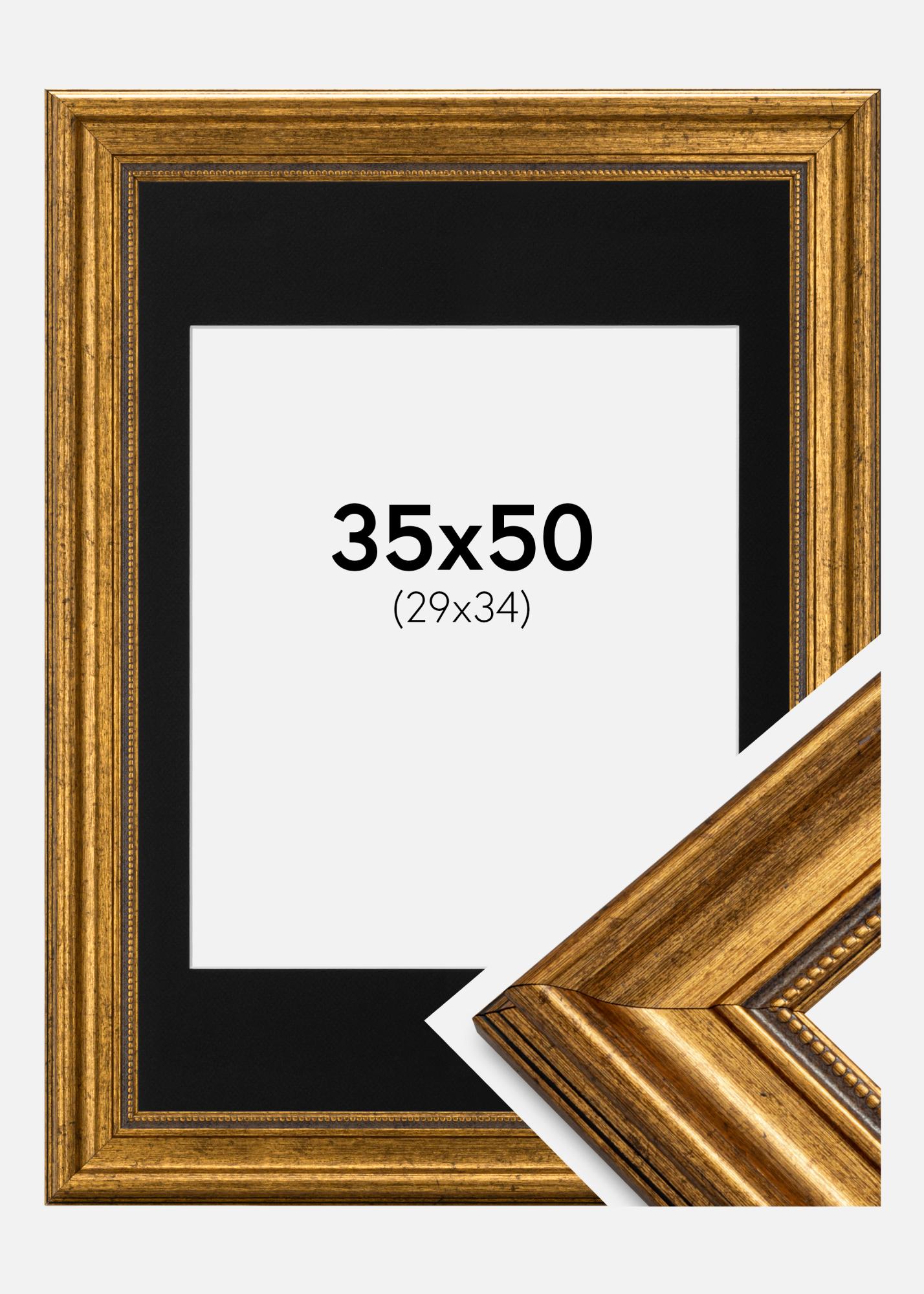 Kehys Rokoko Kulta 35x50 cm - Passepartout Musta 30x35 cm
