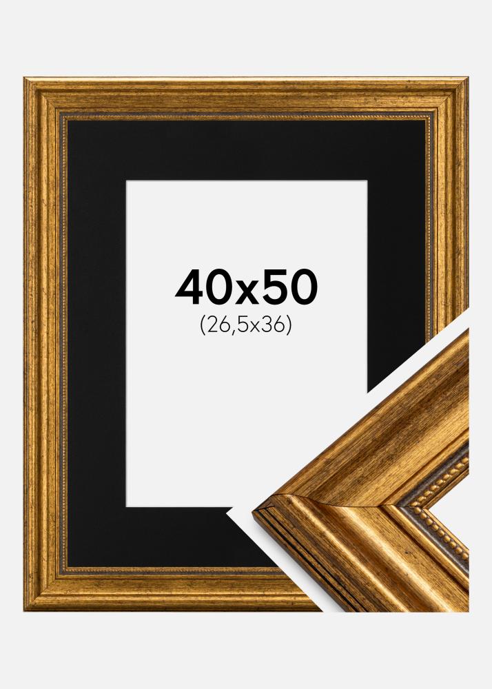Kehys Rokoko Kulta 40x50 cm - Passepartout Musta 27,5x37 cm