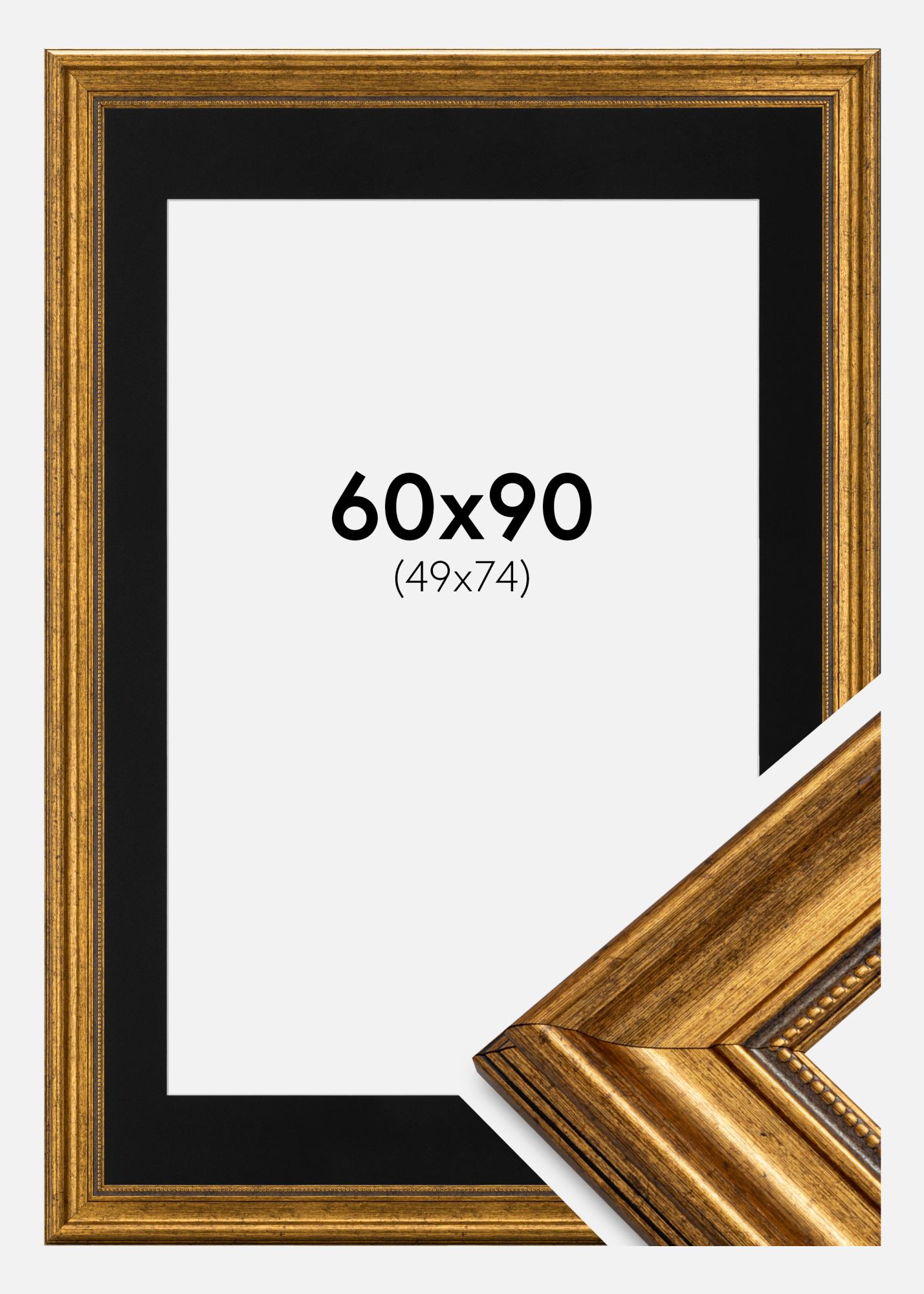 Kehys Rokoko Kulta 60x90 cm - Passepartout Musta 50x75 cm