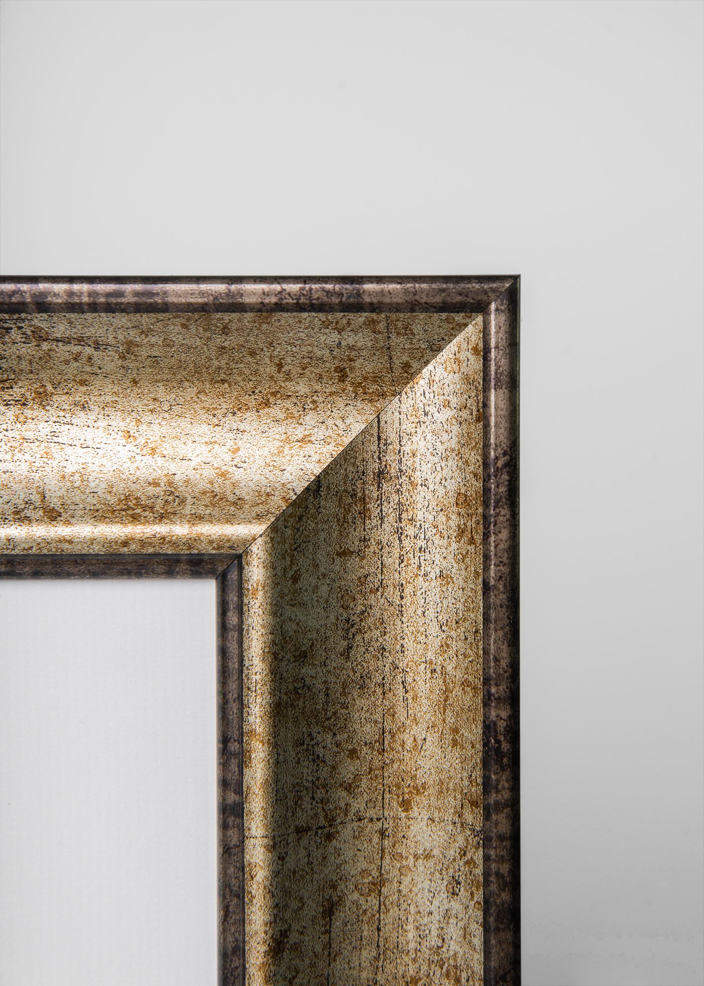 Saltsjöbaden Akryylilasi on kotisi tuleva katseenvangitsija, joka kiinnittää huomion kuviisi päästämällä ne huomion keskipisteeseen. Valokuvakehyksen profiili on hulppeat 64 mm leveä ja tyylikkään kovera. Sen kultahopeinen sävy vie ajatukset klassisen antiikin eleganssiin. Tämä kehys tulee viimeistelemään valokuvasi upealla tavalla, joskin se sopii mainiosti myös modernien kuva-aiheiden vahvaksi kontrastiksi.