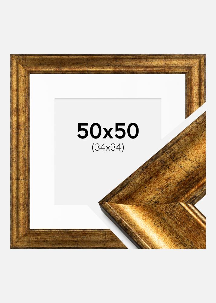 Kehys Saltsjöbaden Kullanvärinen 50x50 cm - Passepartout Valkoinen 35x35 cm