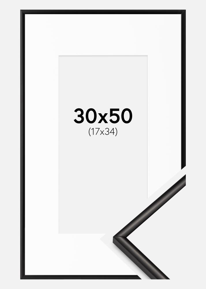 Kehys Scandi Matta Musta 30x50 cm - Passepartout Valkoista 18x35 cm