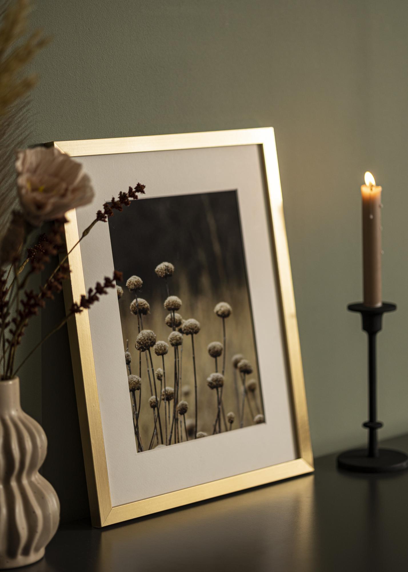 Tämä kiiltävä kultakehys tekee tauluistasi todella ylellisiä. Kehyksen kultainen väri kohottaa sekä värikkäitä että mustavalkoisia kuvia – ja jos sinulla on muita kullanvärisiä yksityiskohtia huoneessa, täydentää kehys myös niitä upeasti!