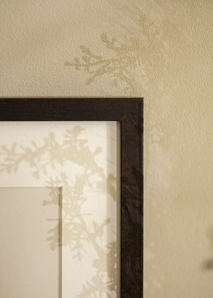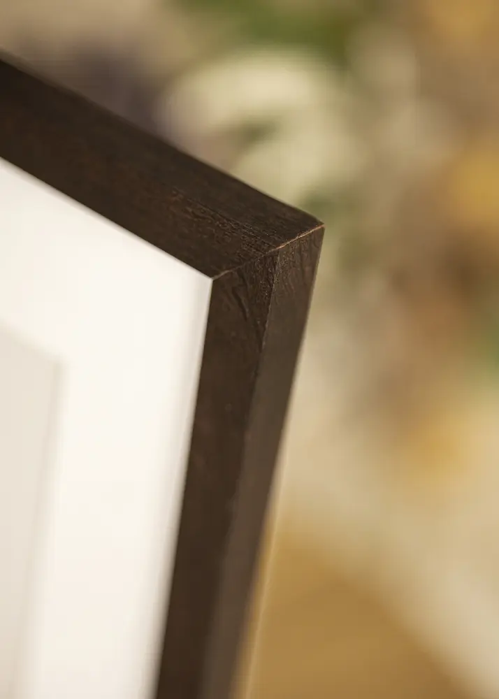 Tämä saksanpähkinänsävyinen taulukehys, jossa on käytetty hieman tummempaa puulajia, erottuu hienosti mustavalkoisia valokuvia tai luontoaiheisia kuvia vasten. Jos sinulla on kaiken lisäksi saksanpähkinäpuisia huonekaluja tai muita sisustusyksityiskohtia, sopii tämä kehys erityisen hyvin sisustukseen!