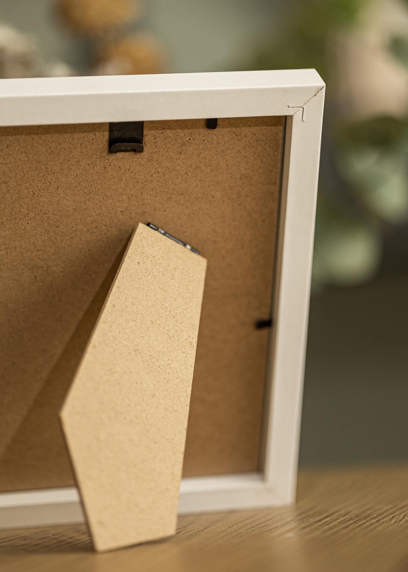 Kehyksen lista on sekä 18 mm leveä että 18 mm syvä. Valkoinen väri sopii useimpiin kuva-aiheisiin ja se on helppo yhdistää muuhun sisustukseen. Kehyksen takakappaletta pitää paikallaan pienet niitit, jotka voi taivuttaa helposti ylös, kun haluat irrottaa takakappaleen ja kehystää kuvasi. Kehyksen takapuolella on seinäkiinnike, jolla voit ripustaa kehyksen sekä vaaka- että pystyasentoon.