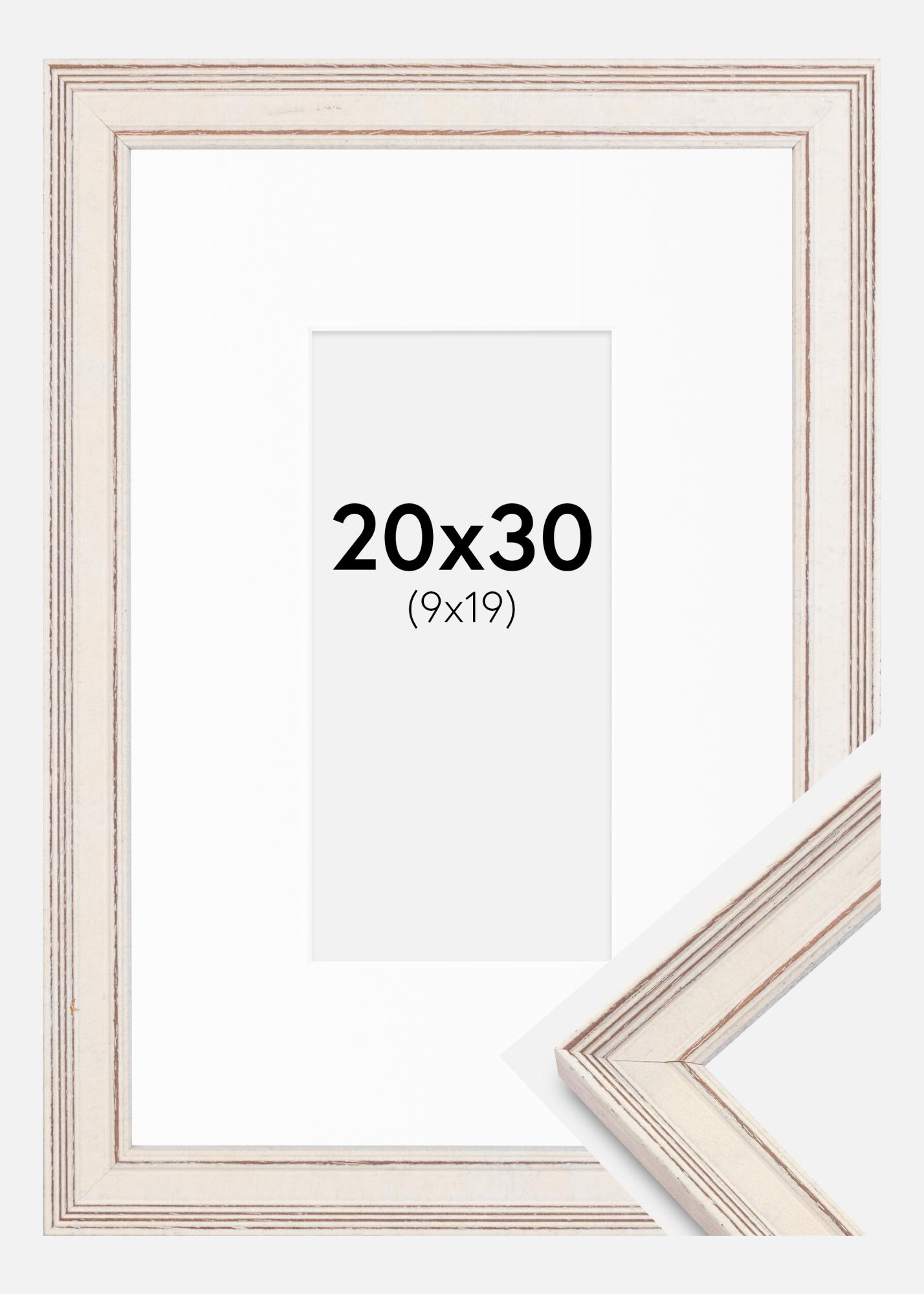 Kehys Shabby Chic Valkoinen 20X30 cm - Passepartout Valkoinen 10x20 cm