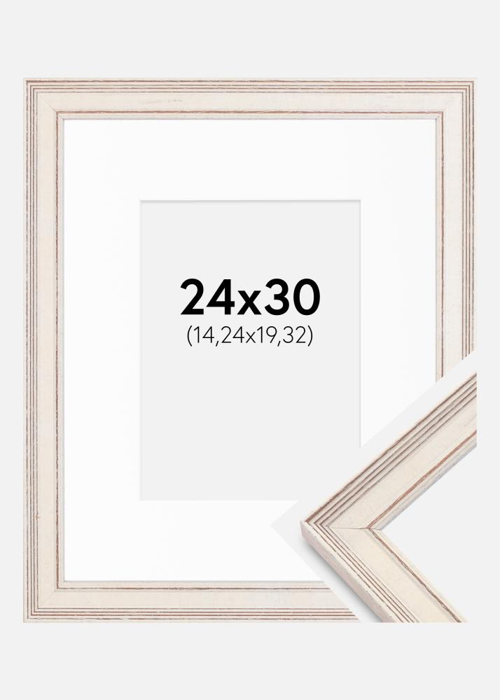 Kehys Shabby Chic Valkoinen 24x30 cm - Passepartout Valkoinen 6x8 inches