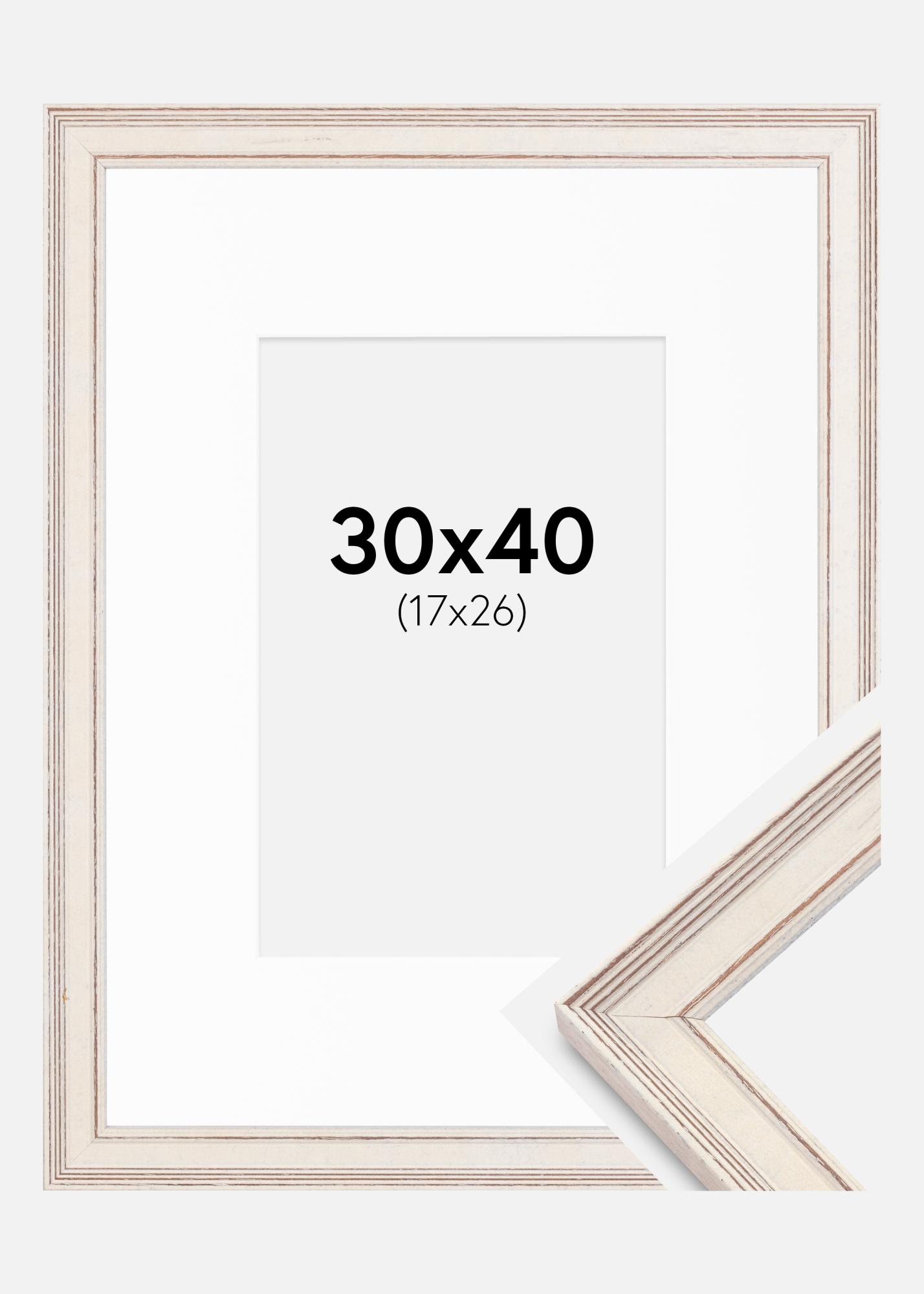 Kehys Shabby Chic Valkoinen 30x40 cm - Passepartout Valkoinen 18x27 cm