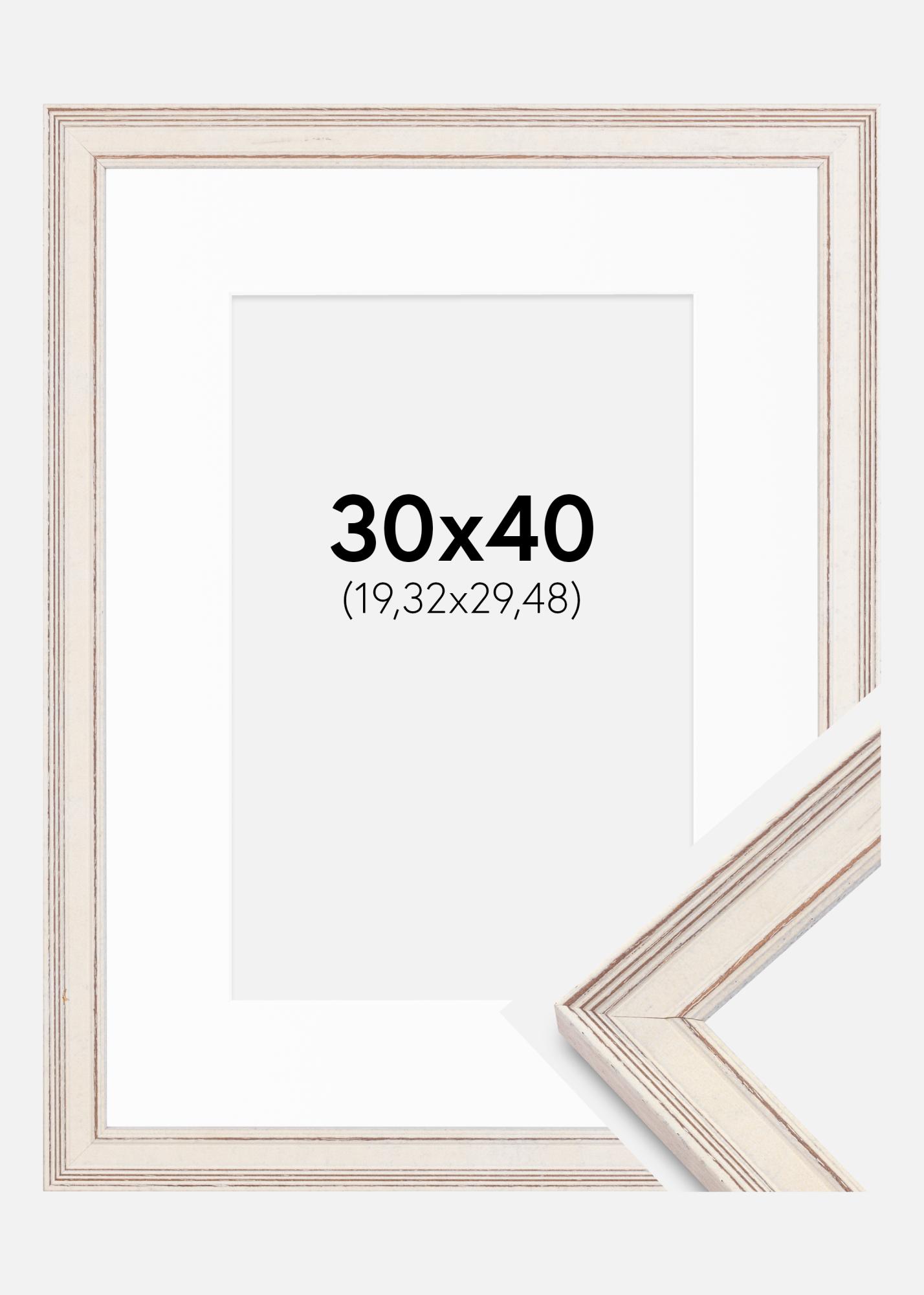 Kehys Shabby Chic Valkoinen 30x40 cm - Passepartout Valkoinen 8x12 inches