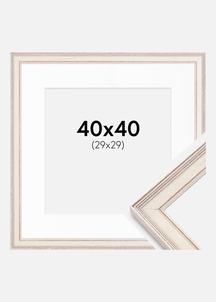 Kehys Shabby Chic Valkoinen 40x40 cm - Passepartout Valkoinen 30x30 cm