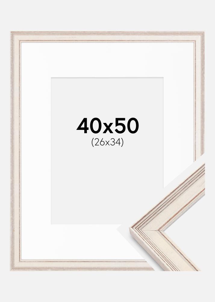 Kehys Shabby Chic Valkoinen 40x50 cm - Passepartout Valkoinen 27x35 cm