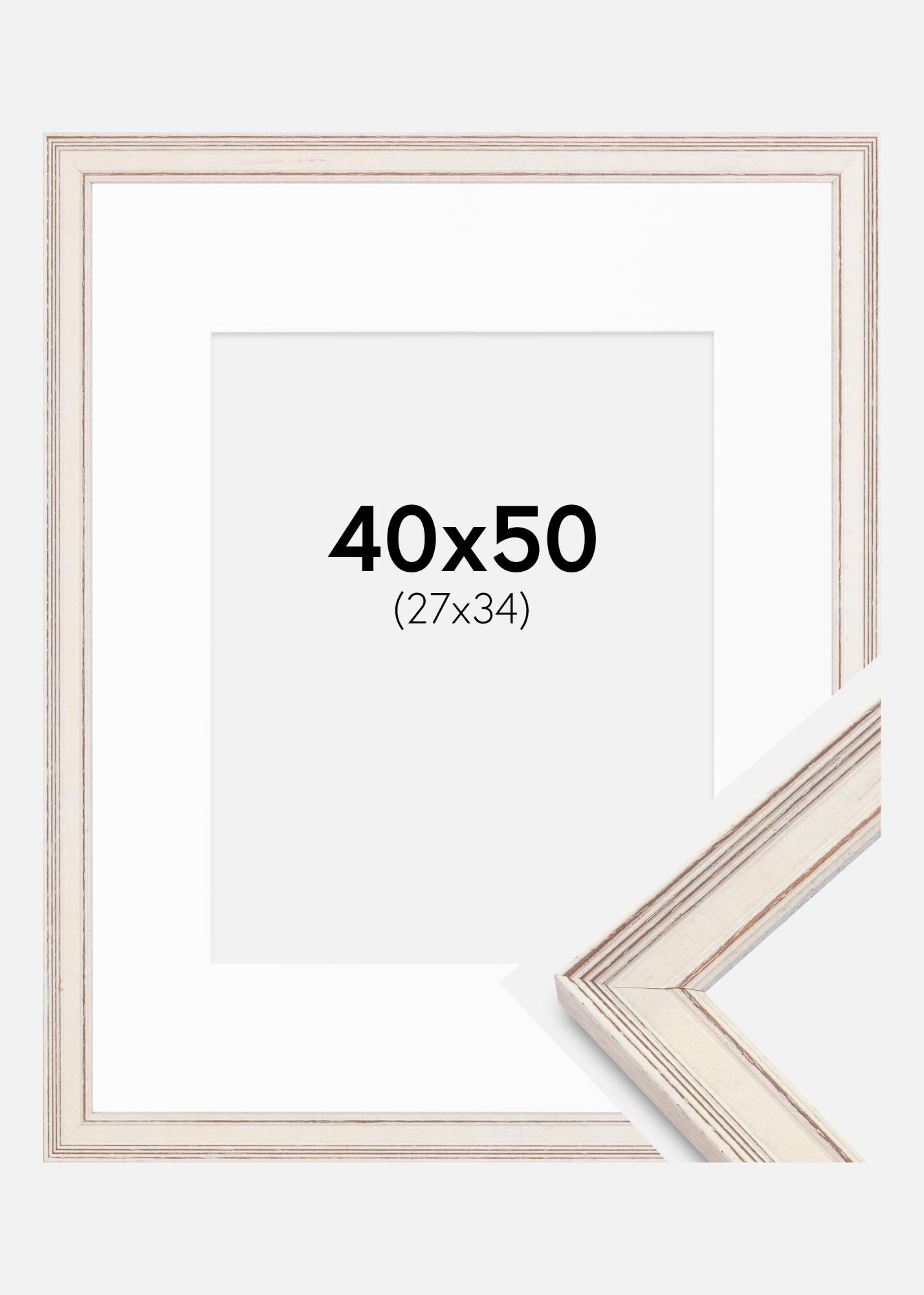 Kehys Shabby Chic Valkoinen 40x50 cm - Passepartout Valkoinen 28x35 cm