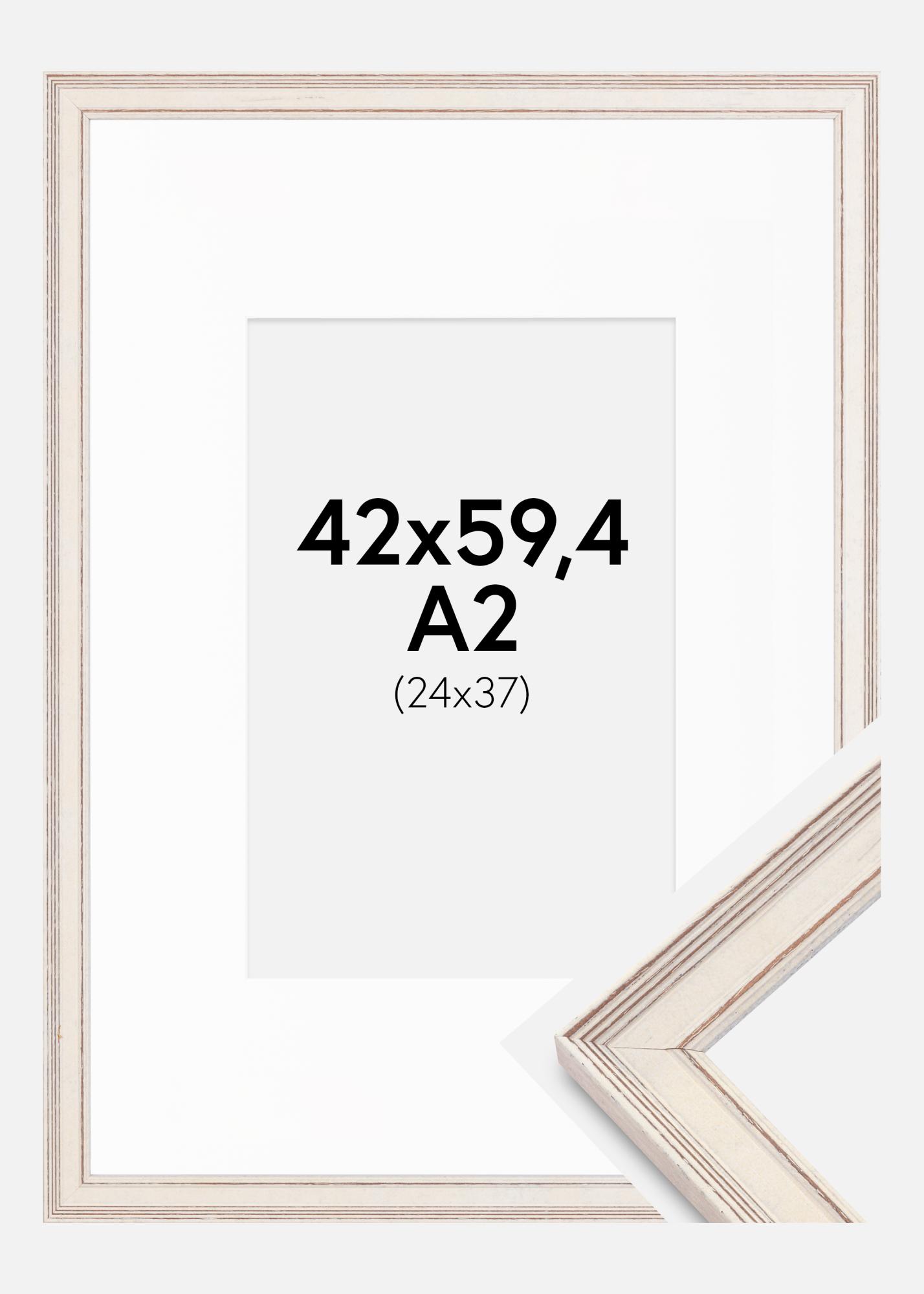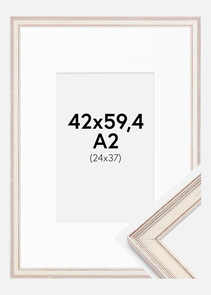 Kehys Shabby Chic Valkoinen 42x59,4 cm (A2) - Passepartout Valkoinen 25x38 cm