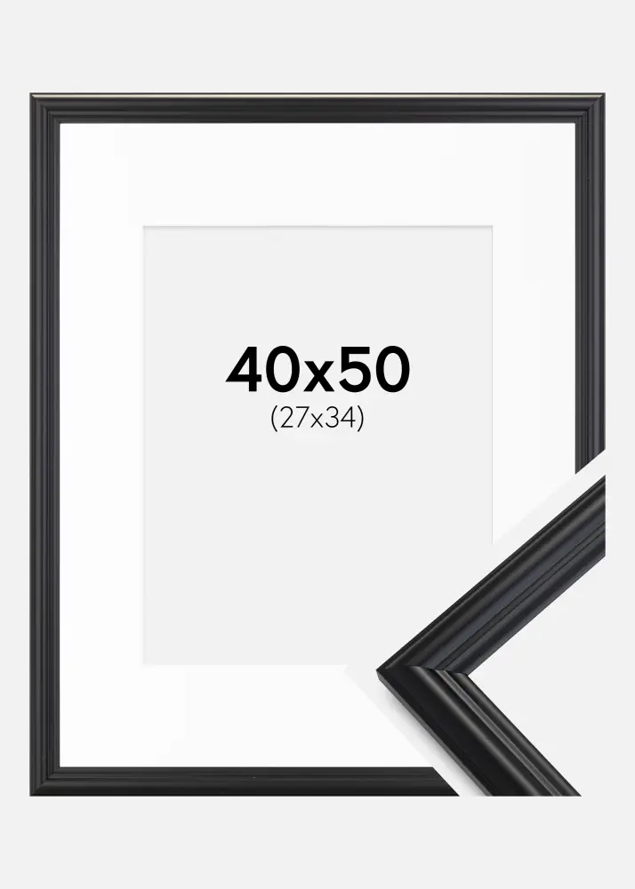 Kehys Siljan Musta 40x50 cm - Passepartout Valkoinen 28x35 cm