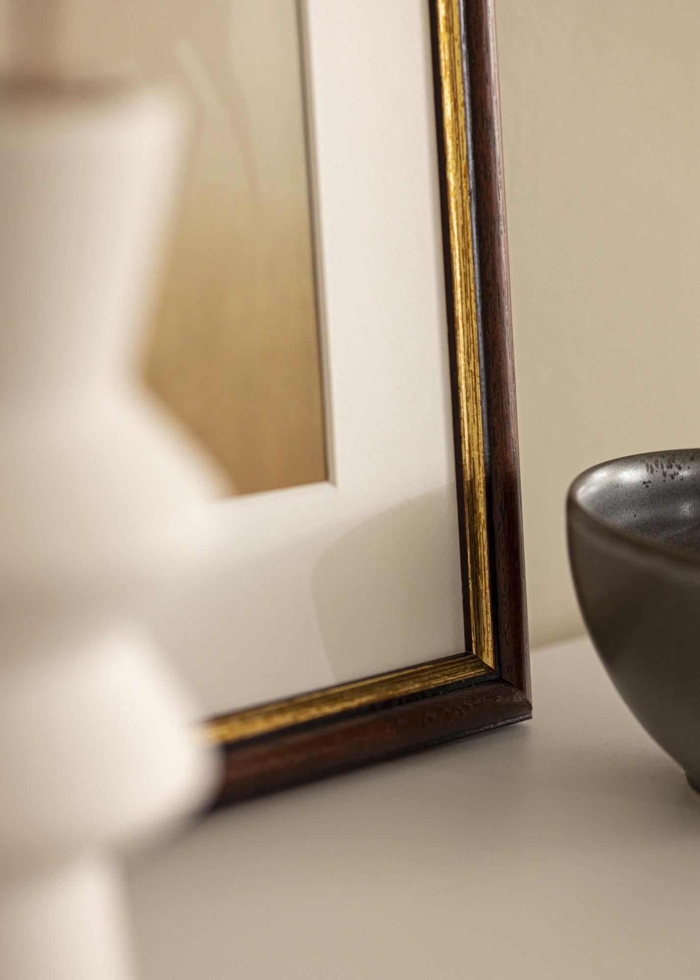 Kehyksen leveys on 24 mm ja syvyys 19 mm, mikä antaa vakaan ja vankan tuntuman. Matta pinta yhdistettynä ruskeaan väriin luo ajattoman ja klassisen ilmeen, joka sopii useimpiin sisustustyyleihin. Kehyksessä on varustettu kristallinkirkas ja särkymätön akryylilasi, joka ei ole vain turvallinen, vaan se myös tarjoaa selkeän ja tarkan näkymän kuvaasi. Muista poistaa suojakalvo akryylilasin molemmilta puolilta ennen kehyksen käyttöä parhaan tuloksen saavuttamiseksi.