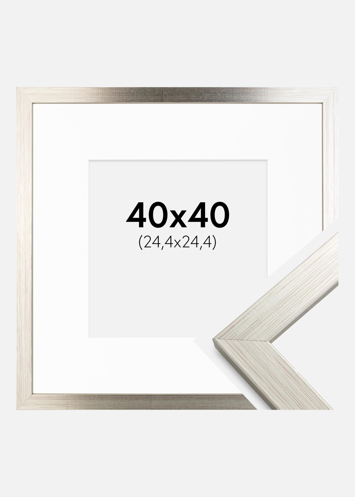 Kehys Silver Wood 40x40 cm - Passepartout Valkoinen 10x10 inches