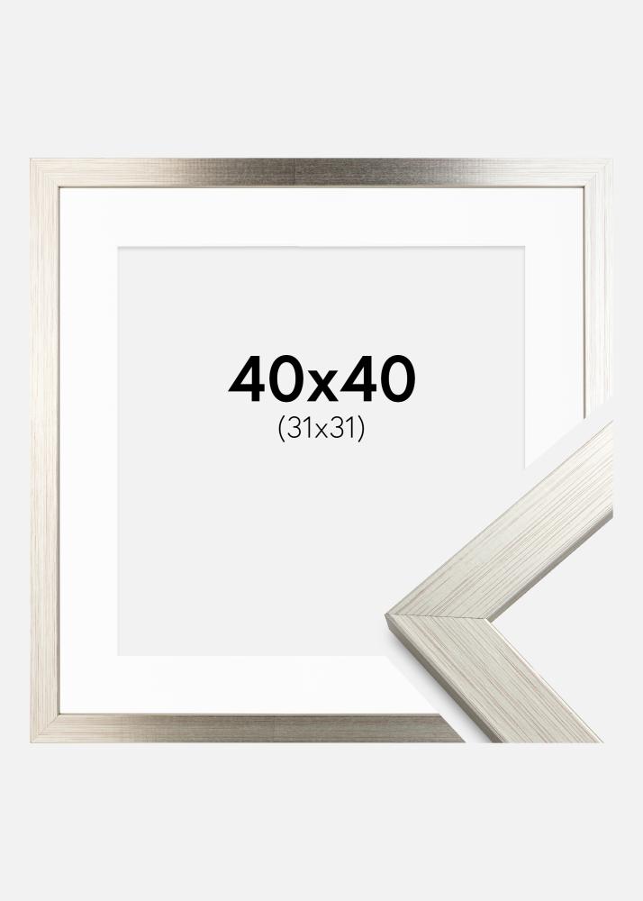 Kehys Silver Wood 40x40 cm - Passepartout Valkoinen 10x10 inches |