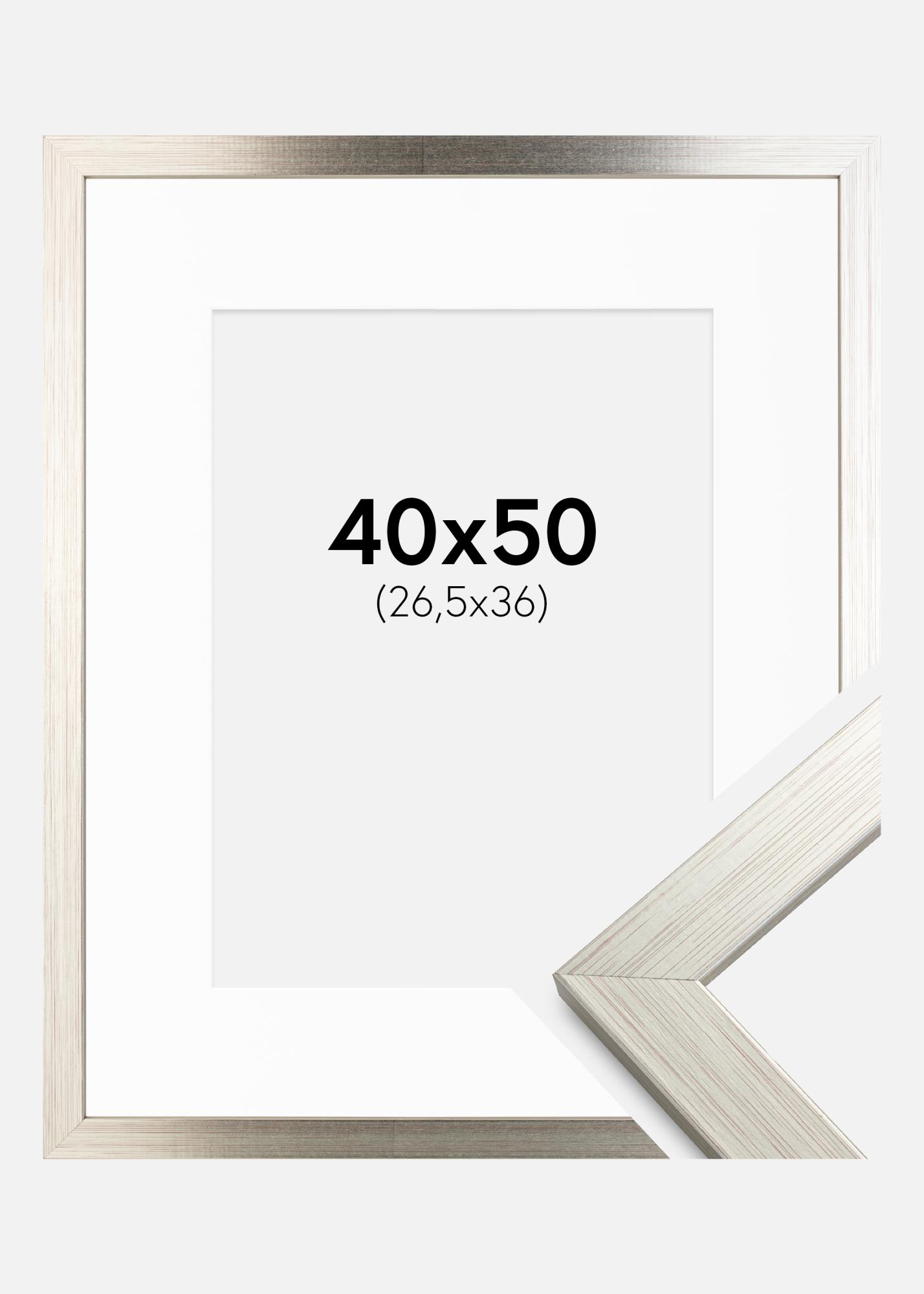 Kehys Silver Wood 40x50 cm - Passepartout Valkoinen 27,5x37 cm