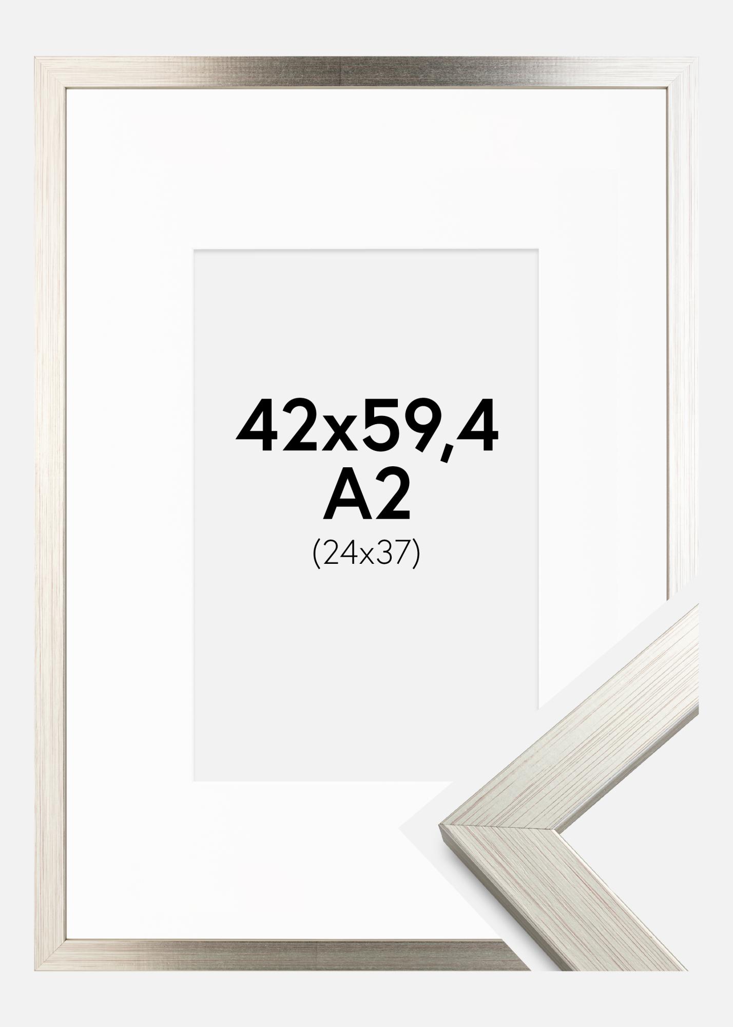 Kehys Silver Wood 42x59,4 cm (A2) - Passepartout Valkoinen 25x38 cm