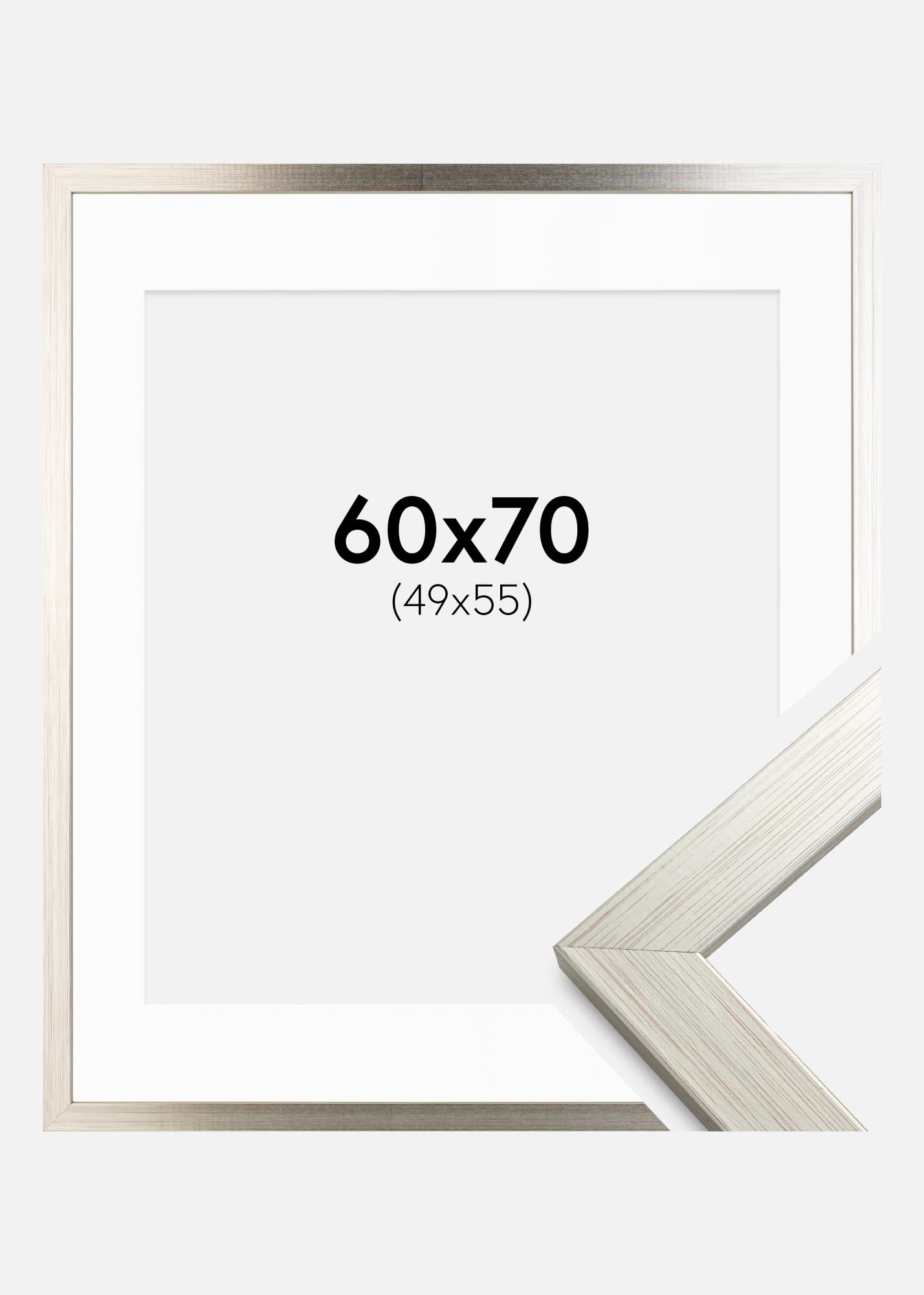 Kehys Silver Wood 60x70 cm - Passepartout Valkoinen 50x56 cm