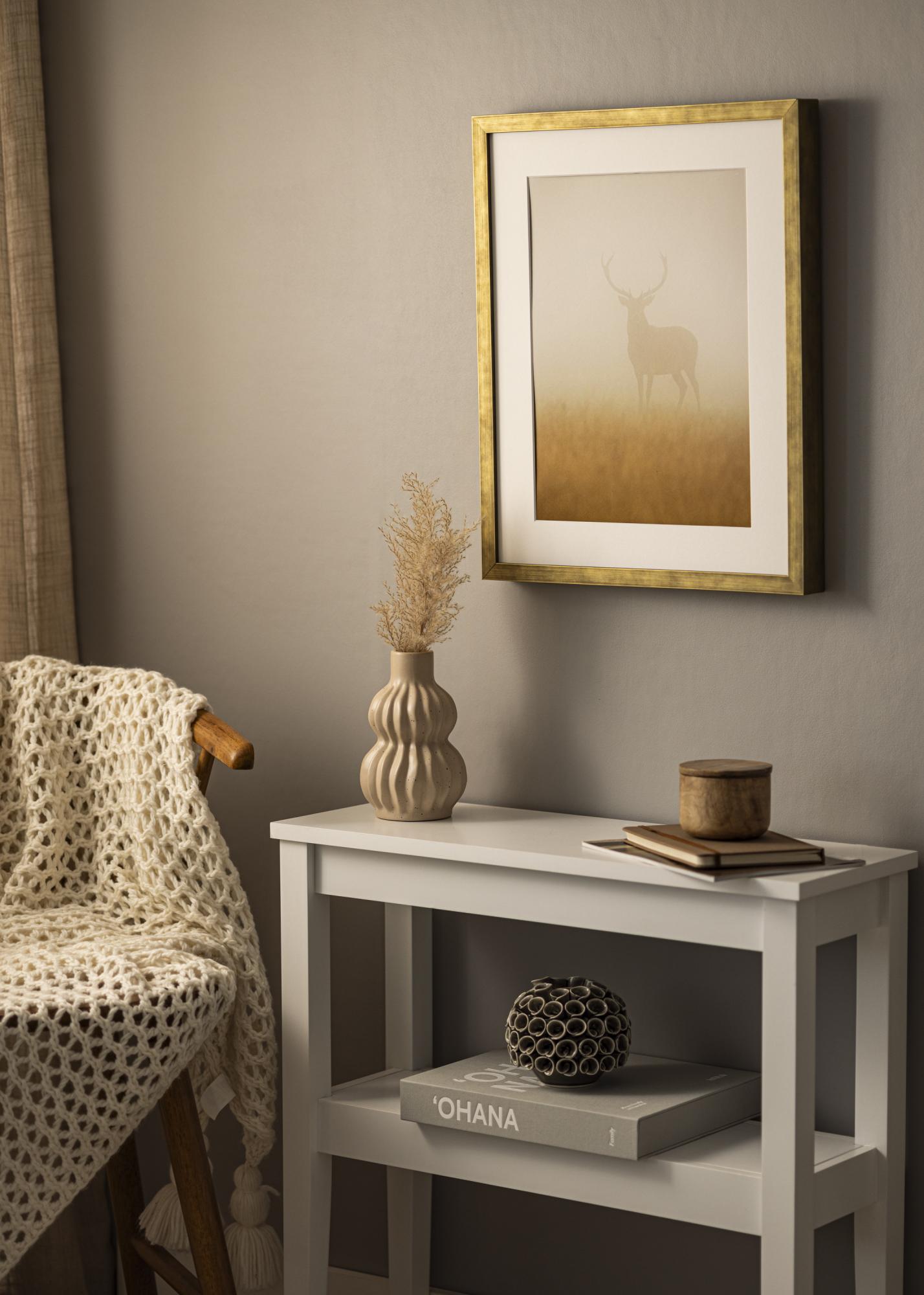Kehyksessä on 20 mm leveä lista ja 39 mm syvyys, mikä antaa sille jykevän ja vankan tuntuman. Mäntyä oleva materiaali tekee kehyksestä sekä kestävän että kevyen, mikä helpottaa sen käsittelyä ja ripustamista. Yksinkertainen muotoilu tekee Somerset Goldista monipuolisen valinnan, joka sopii yhtä hyvin sekä klassisiin että moderneihin sisustusympäristöihin.