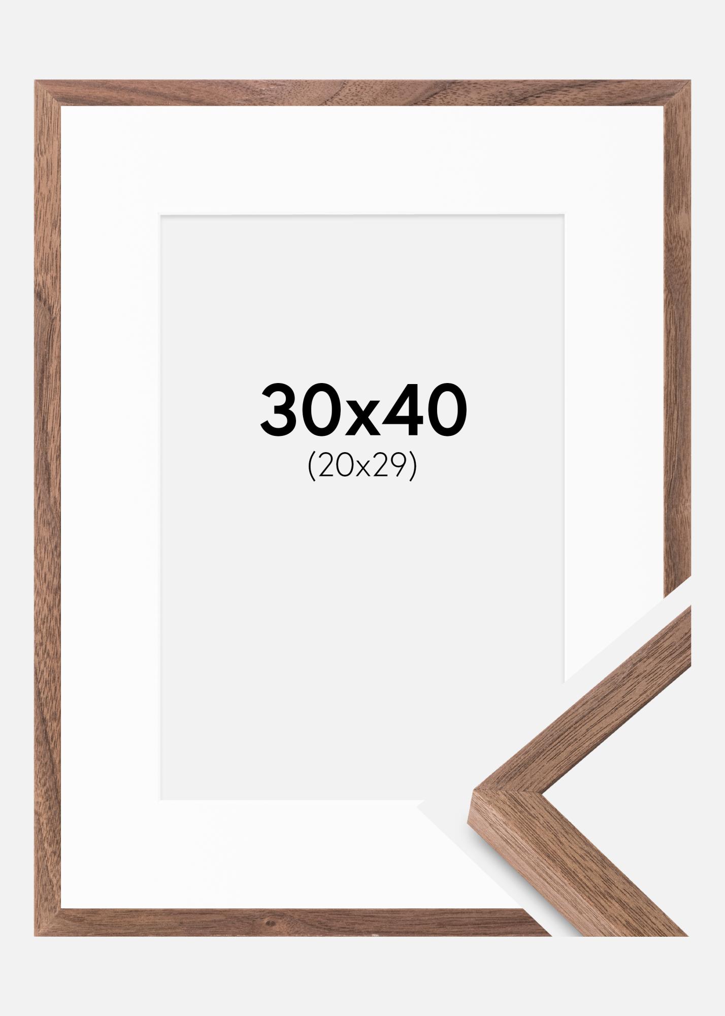 Kehys Soul Walnut Veneer 30x40 cm - Passepartout Valkoinen 21x30 cm