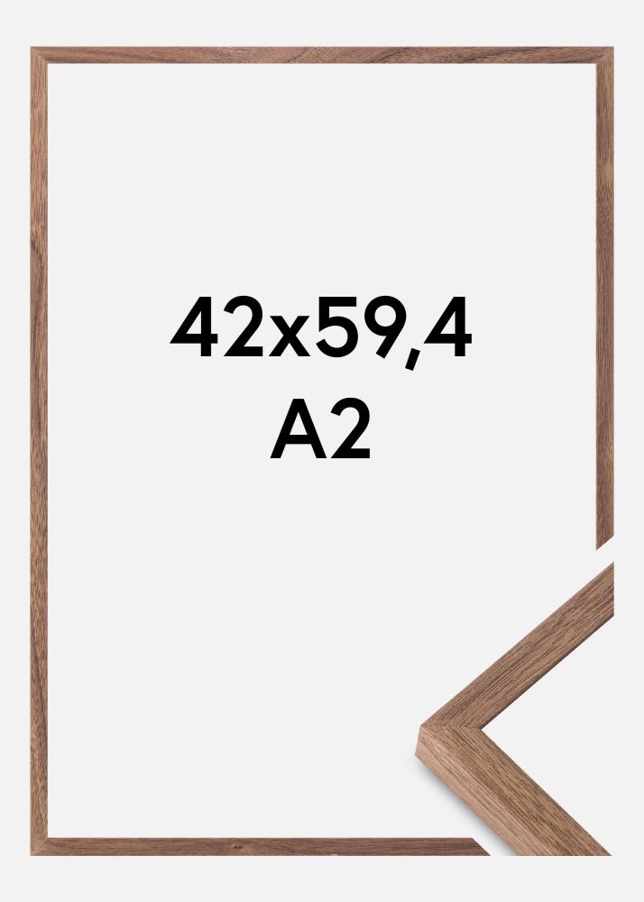Koko 42 x 59,4 cm (A2) sopii tämä valokuvakehys täydellisesti taiteen ja julisteiden standardikokoihin. Hillitty muotoilu täydentää erilaisia sisustustyylejä ja saa kuvasi erottumaan keskellä huomiota. Valitse saksanpähkinänväriset valokuvakehys aikaa kestäväksi ja joustavaksi ratkaisuksi seinillesi.