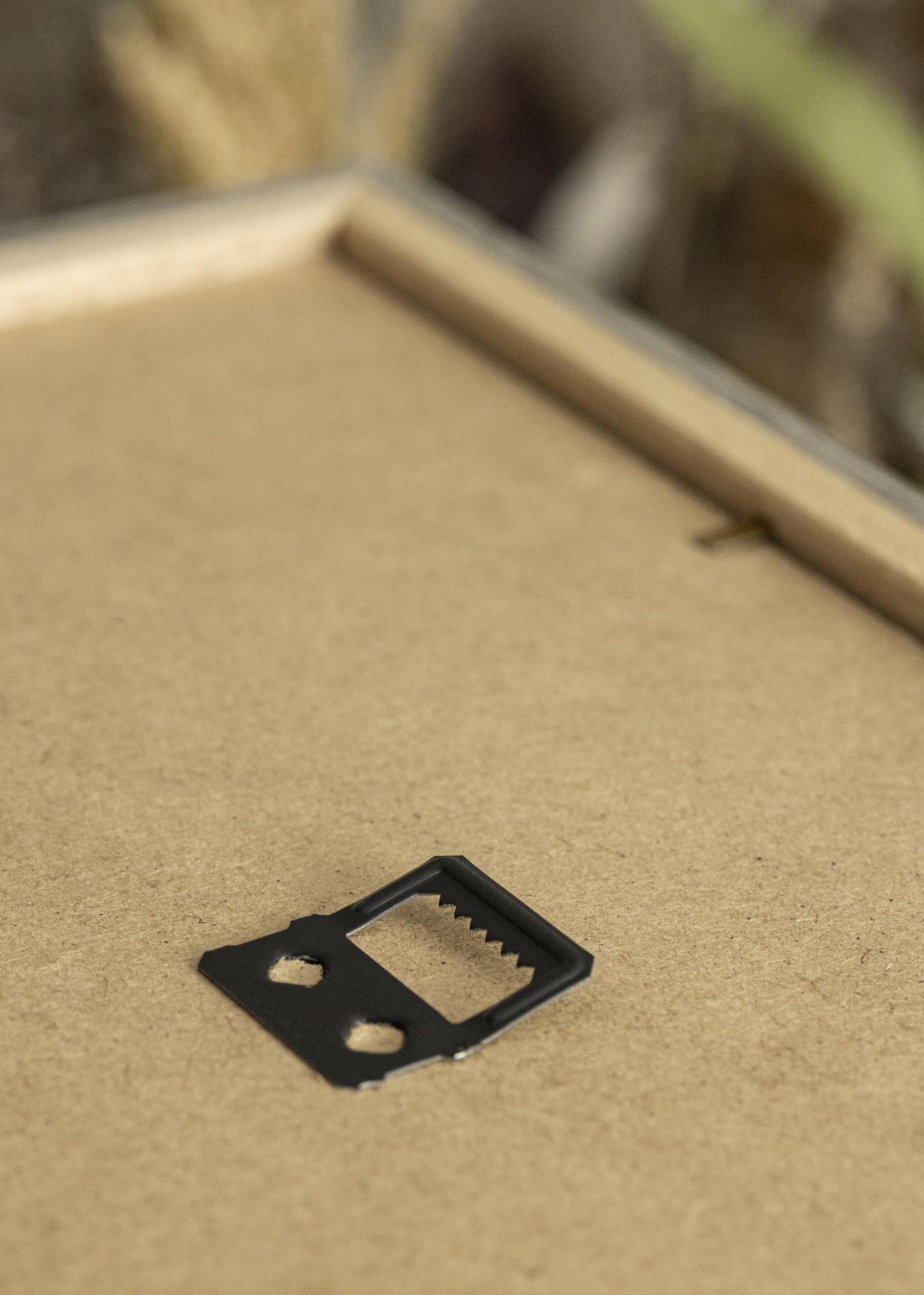 Tämä tyylikäs kehys ei ole pelkästään visuaalinen nautinto, vaan myös käytännöllinen. Takana on metalliset ripustuskoukut, joten voit ripustaa sen joko vaakasuoraan tai pystysuoraan, riippuen tilastasi ja suunnitteluvisiostasi. Kehyksen mitat ovat 21 x 29,7 cm, mikä tekee siitä ihanteellisen valinnan A4-standardikokoisille kuville.