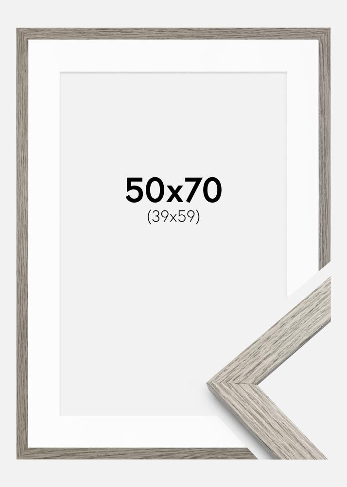 Kehys Stilren harmaa tammi 50x70 cm - Passepartout Valkoista 40x60 cm