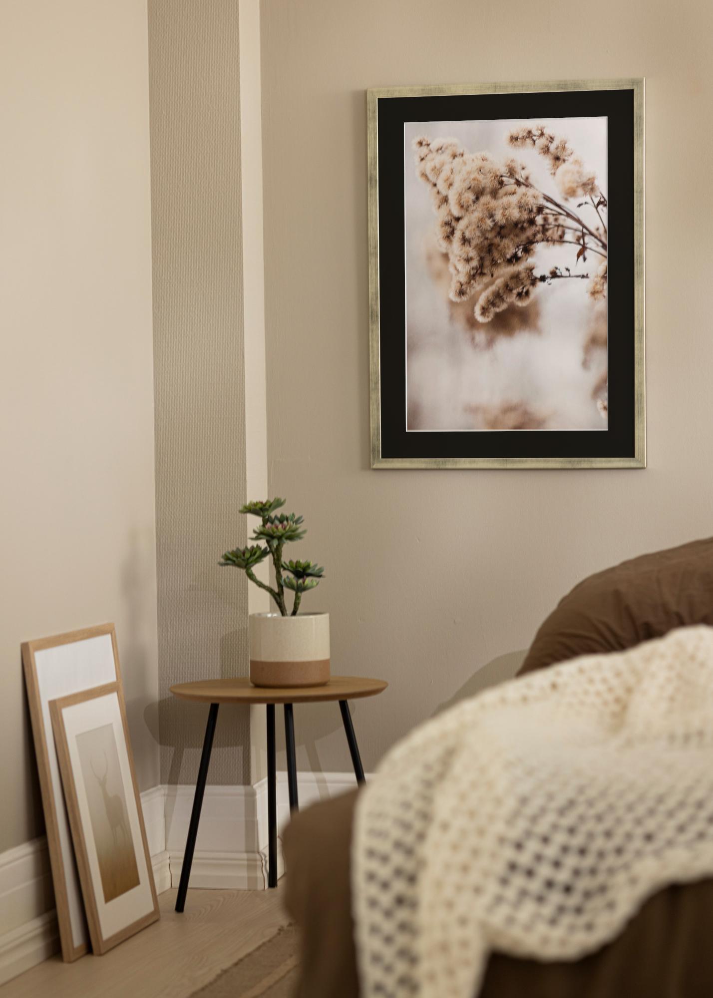 Paketti, johon kuuluu kehys ja kehykseen sopiva musta paspatuuri. Tuotekuvassa näet kehyksen mitat (lihavoituna) ja paspatuurin sisämitat (suluissa). Huomioi, että paspatuurin sisämittojen tulee olla aina 1 cm pienemmät kuin haluttu kuvakoko.