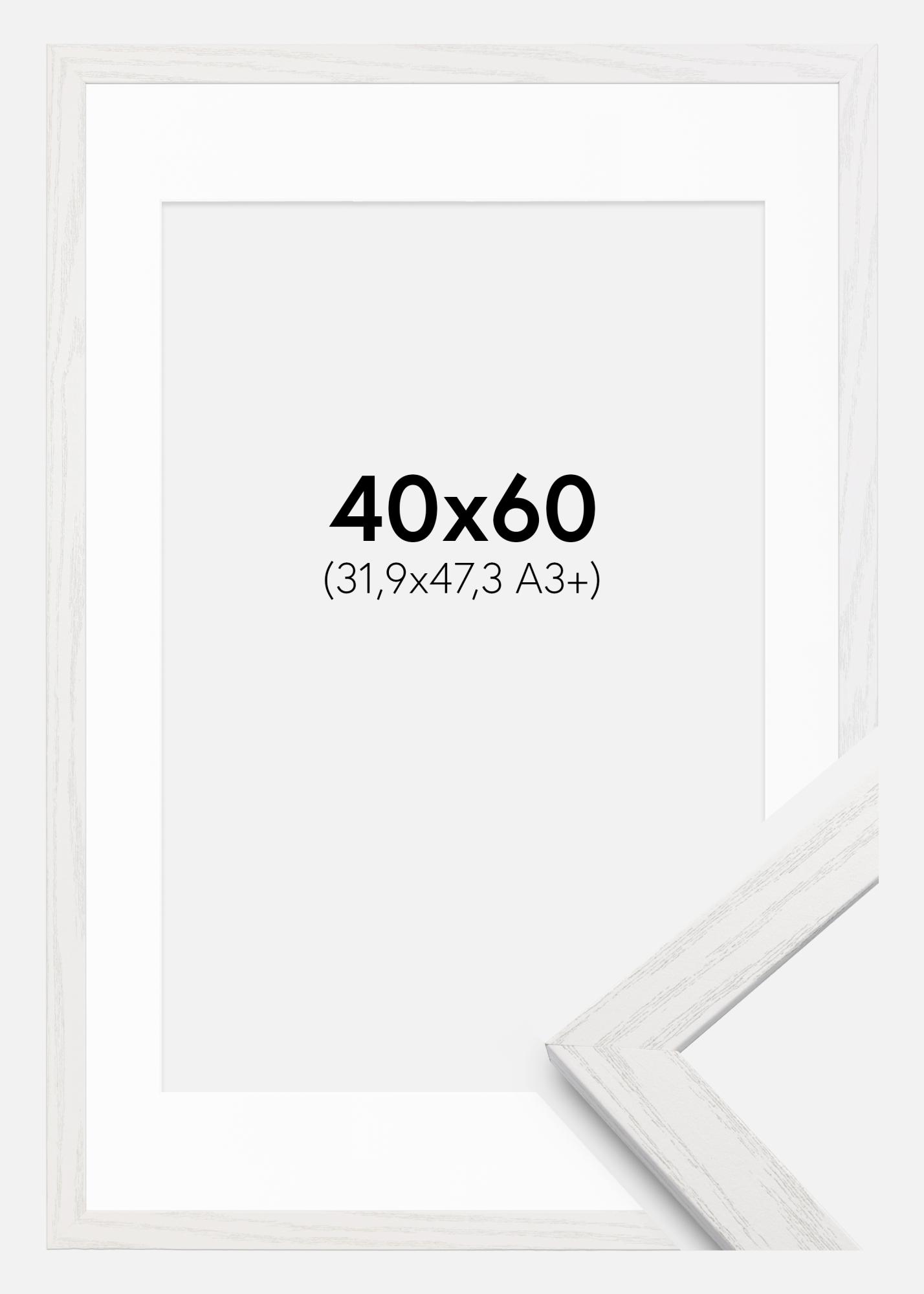 Kehys Stilren Valkoista tammi 40x60 cm - Passepartout Valkoista 32,9x48,3 cm