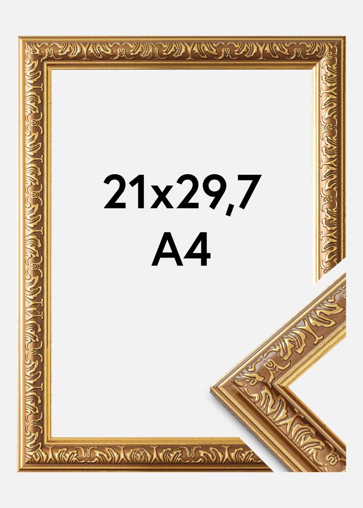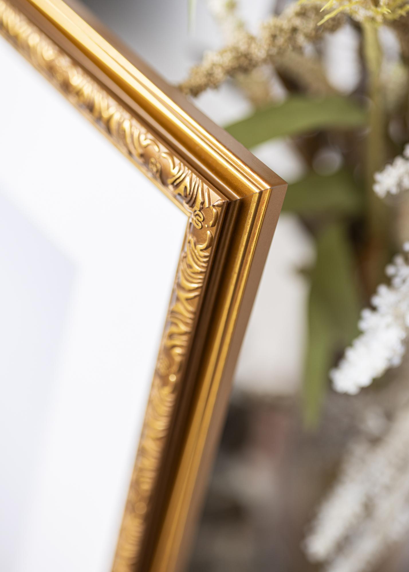 Tämä valokuvakehys, jonka koko on 21x29,7 cm (A4), on täydellinen yhdistelmä klassista eleganssia ja modernia toiminnallisuutta. Sen ylellinen kultainen viimeistely ja koristeelliset, ornamentoidut yksityiskohdat antavat hienostuneen kosketuksen kaikkiin taideteoksiin tai valokuviin. Kehyksen sisäreunaa pitkin kulkevat monimutkaiset kuviot luovat perinteisen ja ajattoman tunteen, mikä tekee siitä ihanteellisen sekä klassisiin että elegantteihin sisustustyyleihin.