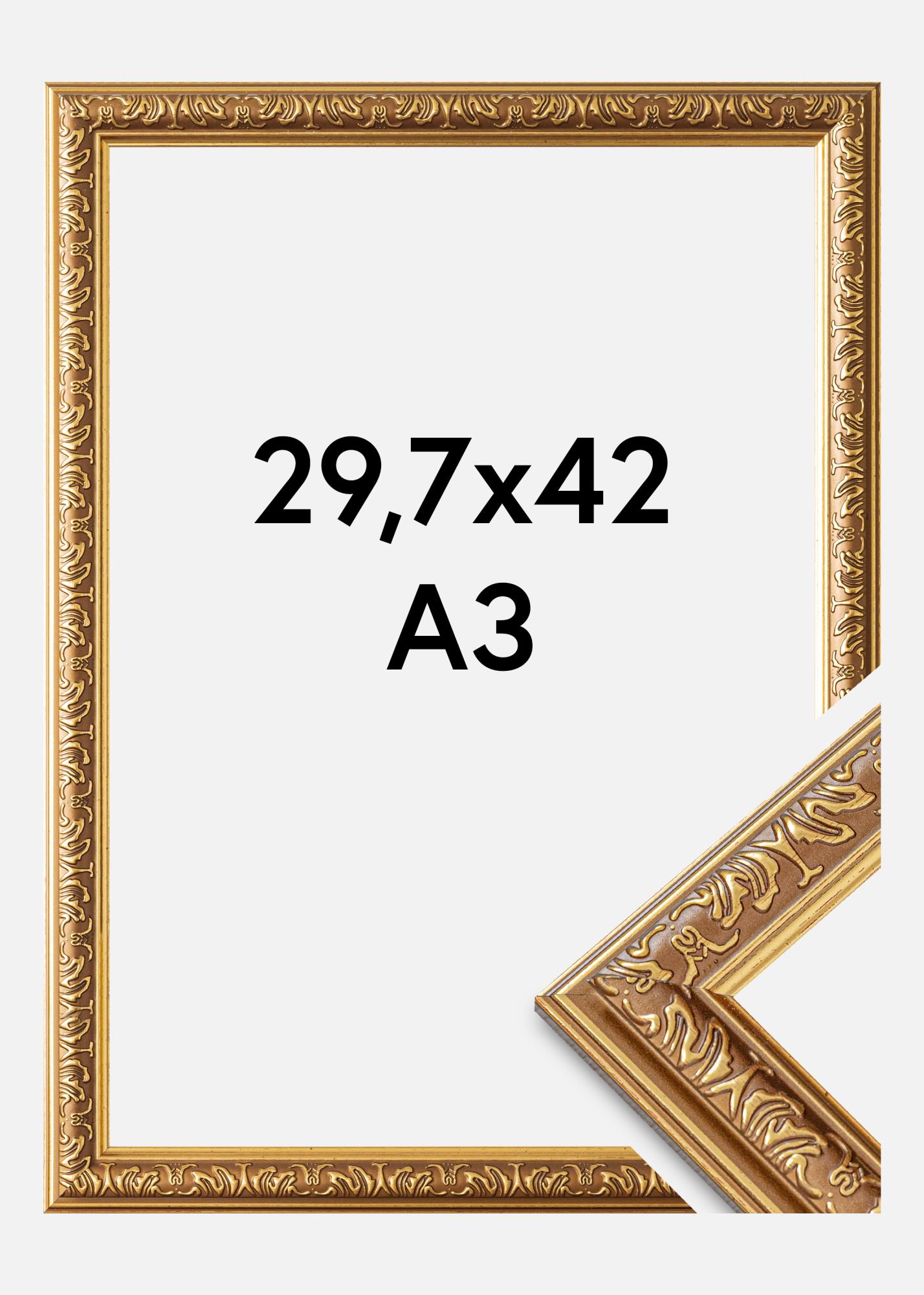 Kooltaan 29,7 x 42 cm oleva tämä kullanvärinen taulunkehys on tyylikäs lisäys kotiisi tai toimistoosi. Riippumatta siitä, mihin päätät sen sijoittaa, se tuo eleganssia ja parantaa huoneen ilmapiiriä.