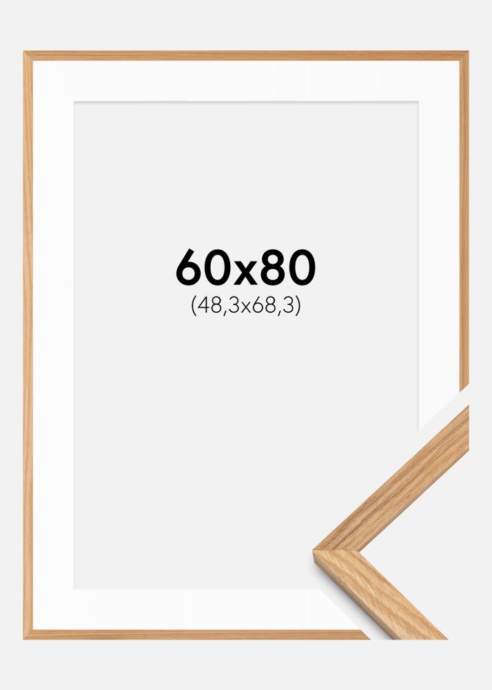 Kehys Massiv Tammi 60x80 cm - Passepartout Valkoista 49,3x69,3 cm