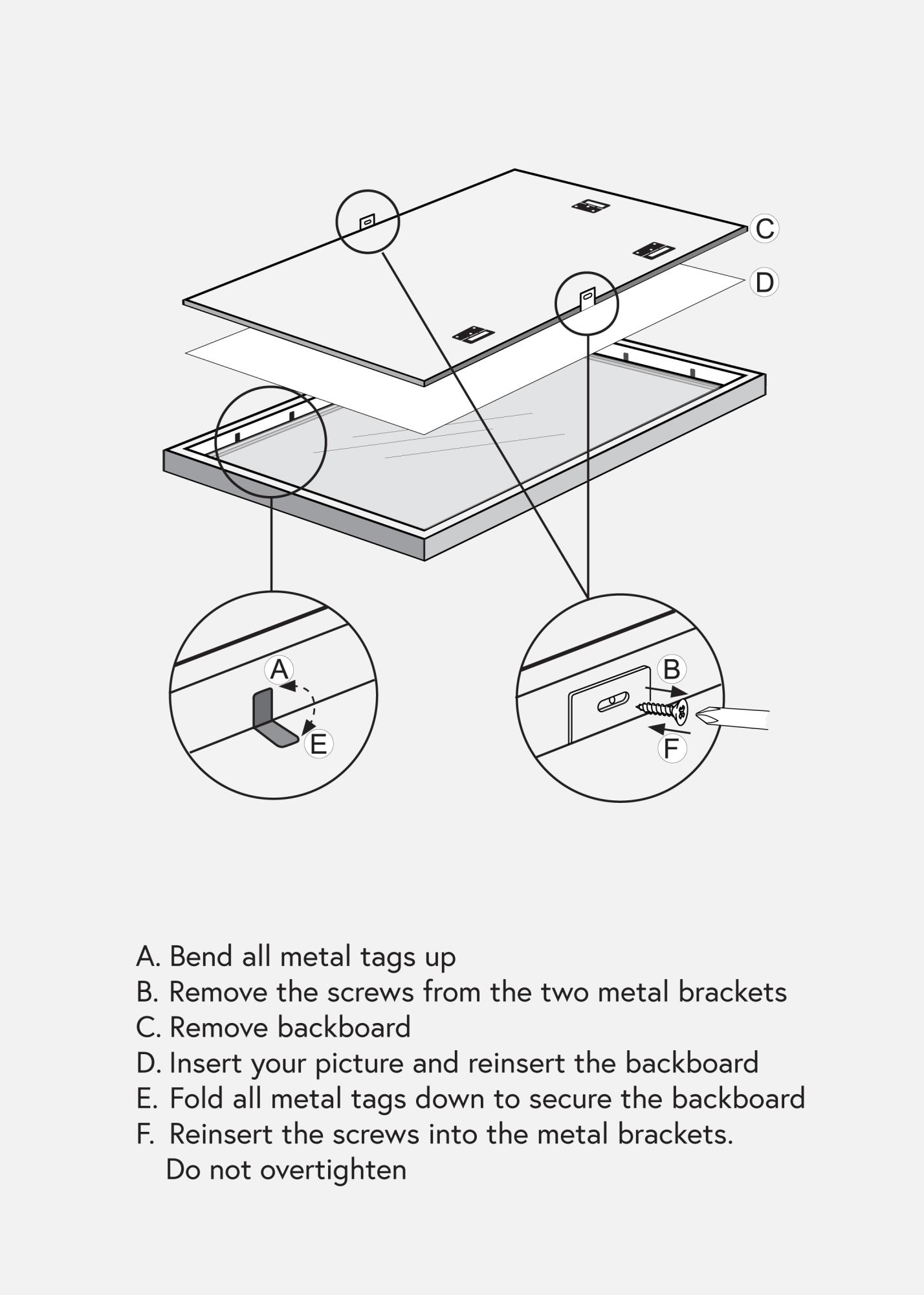 Kehyksen leveys on 14 mm ja syvyys 18 mm, mikä antaa vakaan ja tukevan tunteen. Varustettu metallisilla riippukoukuilla takapuolella, tämä kehys voidaan helposti ripustaa sekä vaaka- että pystysuunnassa, mikä antaa joustavuutta siinä, kuinka haluat esittää kuvasi. Kristallinkirkas ja särkymätön akryylilasi suojaa kuvaasi samalla kun se antaa selkeän ja kirkkaan näytön. Muista poistaa suojakalvo lasin molemmilta puolilta ennen käyttöä parhaan tuloksen saavuttamiseksi.