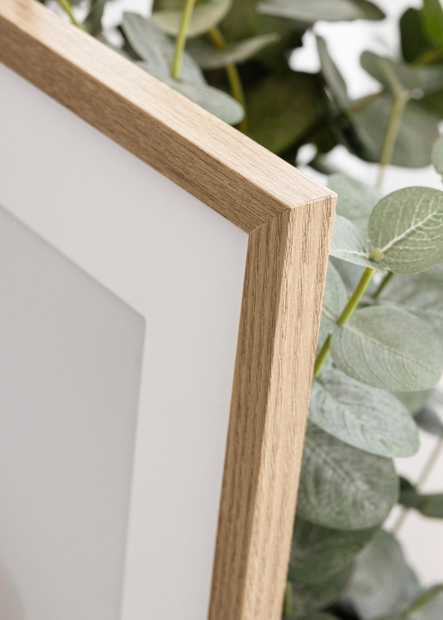 Valokuvakehys on valmistettu MDF:stä, jonka pinta on tammiviilua. Kapean listaprofiilin leveys on 15 mm. Kehyksen 12 mm huulloksen ansiosta voit täydentää kehystyksesi ylellisellä paspatuurilla.